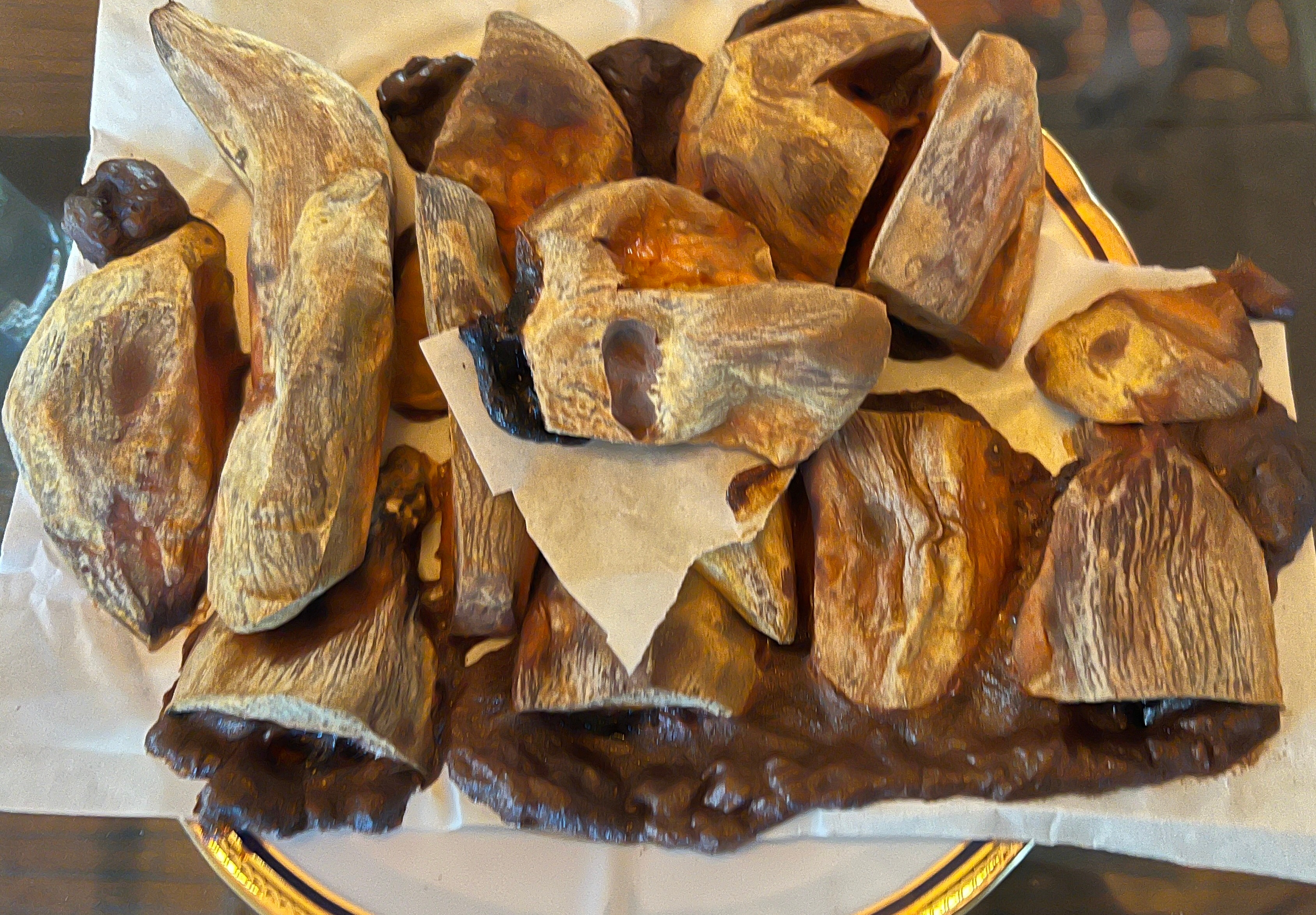 被架在火上烤是什么滋味,都烤出焦糖来了,但红薯很甜,自产自足。