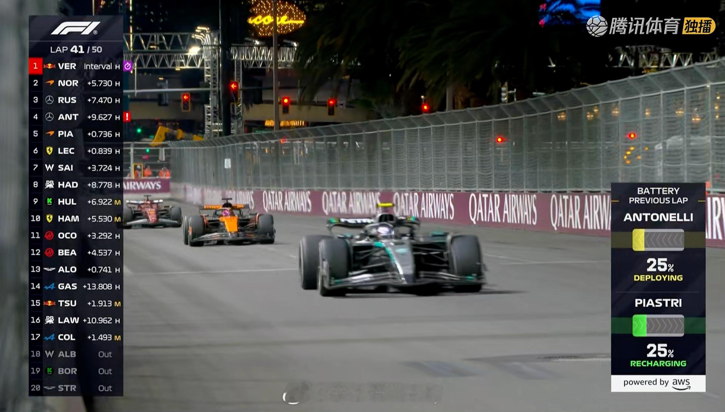 我很好奇安东内利最后完赛会在第几不换胎完赛目前看损失比较少但就是要看他能顶到什么程度小伙子加油啊!