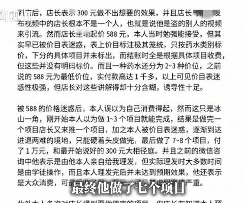 武汉攀同学在一家理发店遭遇诱导性消费,头发理到一半的时候理发师开始推荐高端项目和顶级护理项目,本想拒绝的攀同学半推半就的选择了七个项目,最后结账1万3千元,可他全部余额只有一万元,这时候店长咳嗽了两声学徒理发师说:那就算你走大运,一万元也行就这样攀同学离开了理发店。 在回学校的路上他越想越气,这下个月的生活费该怎么办,于是他又返回店里要求店家退钱,可理发师说项目是你自己选的我们都有明码标价,你消费完后悔了这个是你个人的问题,无论是站在人道主义的位置,还是经商理念的处境我们已经仁至义尽,如果你想退钱只能找相关部门进行调解,无奈之下攀同学和理发师去了社区相关部门,具体结果不详。 攀同学到店以后准备按照预约的300元进行精剪,店长表示300元价位不符合你的气质,最起码588元才是你发型的最佳消费,攀同学觉得588元自己能消费的起,于是同意可理到一半的时候理发师开始推荐高端项目,此时的攀同学本想拒绝,可他以为这些项目自己能消费的起,可能有一个误会的点他以为此时的项目是包含在588元里的,于是选择了七个项目,最后结账让他诧异,于是发生了纠葛。 其实去理发店就看门口有没有精剪15元字样,如果有就是比较正规的理发店,就算里面有高端消费也不会太离谱,如果没有自己衡量,大家都明白理发行业的猫腻,尤其是对学生和刚出来打工的人极其的不友好,如果有选择尽量选择女理发师,就算是发生纠纷她也跑不过你。