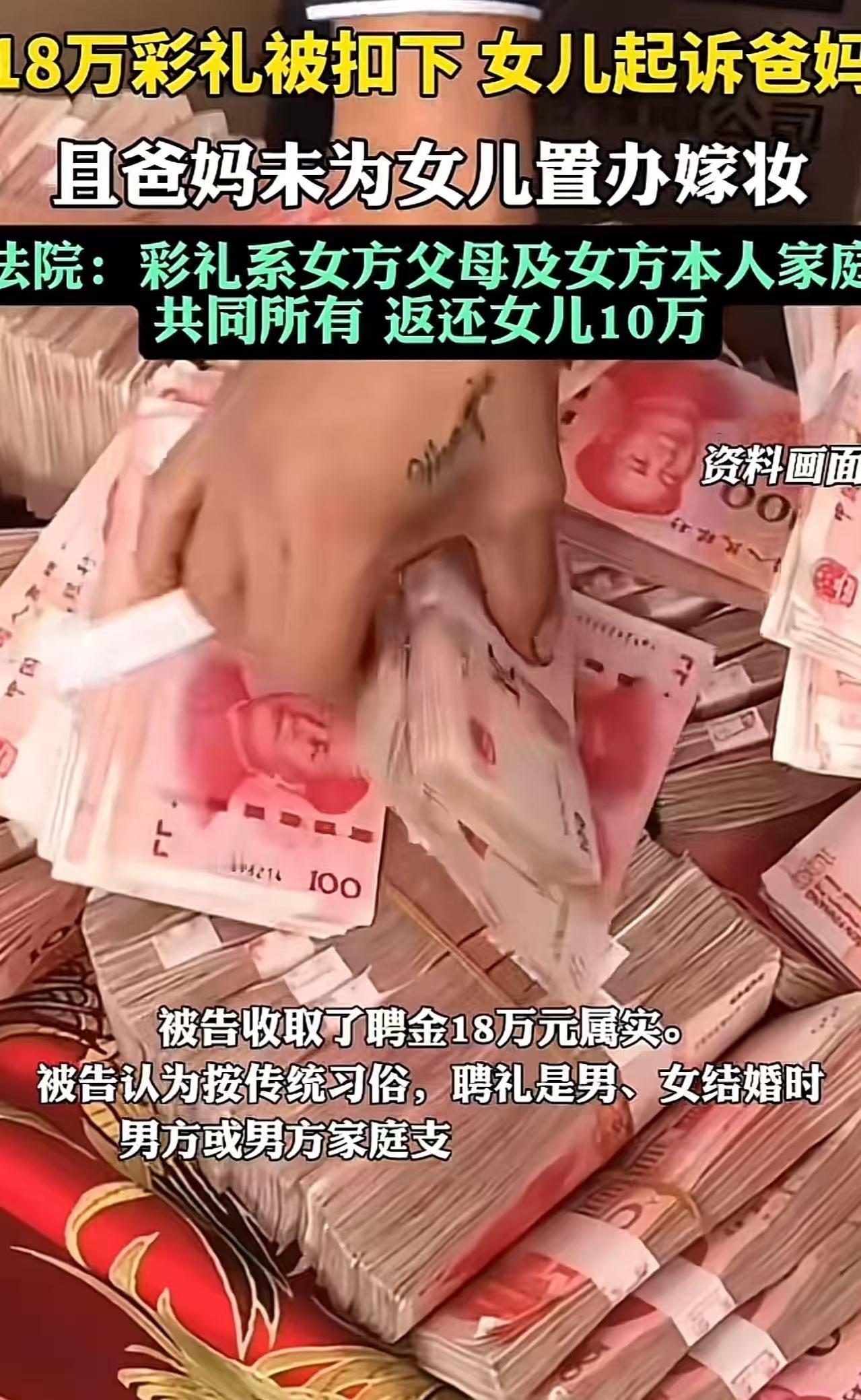 “我生孩子差点死在产房,你们却死死攥着彩礼钱不放!”婚后,丈夫家庭条件不宽裕,生活困难,女子多次向父母索要18 万彩礼,均遭拒绝!,甚至在生产住院急需医疗费用时,父母也拒绝帮忙。最终,她将父母告上法庭,要求返还彩礼。法院的判决,让人意想不到! 小莉和丈夫小张经媒婆介绍认识,两人互相看对眼。但是,当谈到结婚时,小莉的父母提出了18万彩礼的要求,否则不同意这门婚事。 小张真心喜欢小莉,为了娶她,他东拼西凑,甚至向亲戚朋友借钱,终于凑齐了这笔彩礼。 婚礼如期举行,小莉和小张开始了他们的婚姻生活。可是,婚后的生活并不像他们想象的那样美好。 小张虽然努力赚钱,由于婚前欠下了一屁股债,加上日常开销,小两口的日子过得紧巴巴的。 小莉看小张压力这么,心疼他,多次向父母提出,希望他们能将18万彩礼返还,帮助他们缓解经济压力。 在她看来,这笔钱是小张给她的,父母应该还给她,用于小家庭的建设。 可是,小莉的父母却有自己的想法。他们认为,养大小莉不容易,这笔钱是他们应得的回报。 而且,他们还有儿子要娶媳妇,也需要钱。因此,他们坚决拒绝了小莉的要求。 因为是父母,小莉没有撕破脸,只能继续跟父母沟通商量。 但让小莉真正寒心的是,她在生产住院时,因为没钱交医药费,向父母求助,却再次遭到拒绝。 那一刻,她感到无比的绝望和愤怒。她明白,在父母的心里,钱比她这个女儿还重要。 在多次协商无果后,小莉做出了一个艰难的决定:将父母告上法庭,要求返还18万彩礼。 法庭上,双方各执一词。 小莉父母辩称,按照传统习俗,聘礼是男女结婚时,男方给支付给女方家庭,并由女方父母支配的钱物,并不是给女方个人,亦不存在保管关系。 法院经过审理后认为,彩礼虽然按传统属于对女方家庭的赠与,但在现代社会,应该兼顾时代发展,不能完全按照传统习俗来处理。 考虑到小莉的父母并未为小莉举办婚宴,也没有置办嫁妆,且小莉有实际的生活需求,法院最终酌情判决小莉的父母返还10万元彩礼。 这起案件引发了我们对彩礼习俗的深刻反思。彩礼,本应是男方对女方家庭的尊重和感谢,但在现实生活中,却常常演变成一种经济负担,甚至成为亲情破裂的导火索。 婚姻的本质是两个人的结合,是爱情和责任的承诺,而不是一场金钱交易。父母养育子女,本就是一份无私的付出,不应该把子女的婚姻当作一种经济回报。 同时,我们也应该看到,法院的判决体现了法律的温度。它不仅考虑了传统习俗,也兼顾了现代社会的价值观和当事人的实际需求。 法律不仅仅是冰冷的条文,更是维护公平正义、促进家庭和谐的重要工具。 最后,希望这起案件能引发更多人对彩礼习俗的思考,让婚姻回归本质,让亲情不再被金钱所绑架!