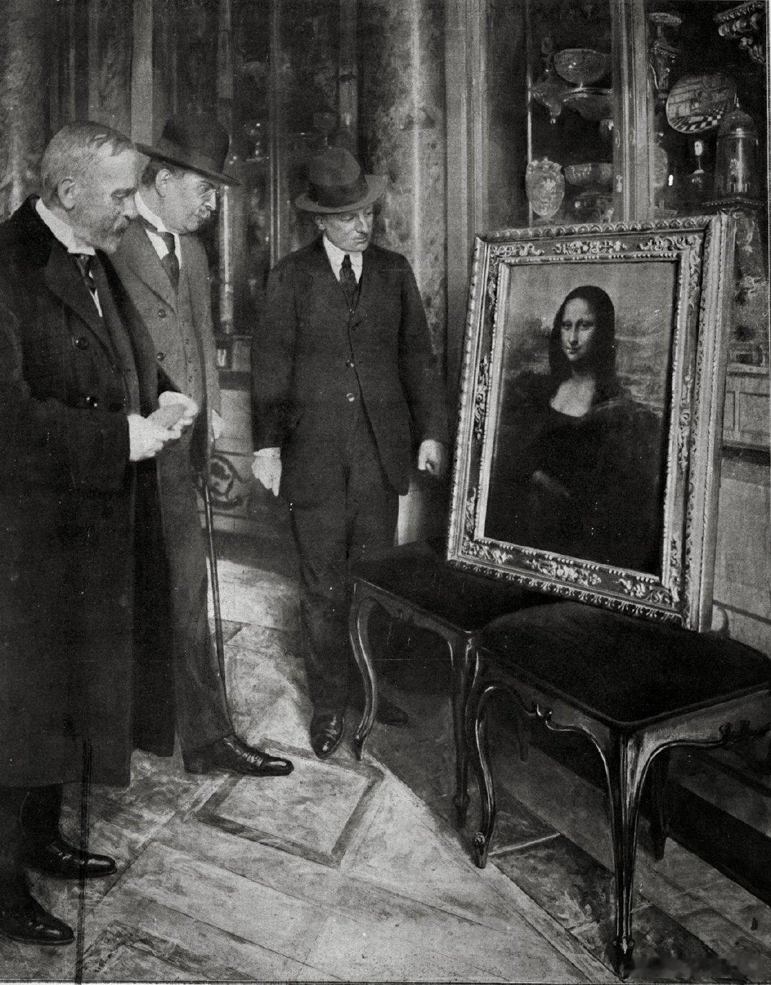 20世纪最轰动的艺术品盗窃案——1911年意大利人温琴佐·佩鲁贾(1881-1925)盗窃《蒙娜丽莎》。温琴佐·佩鲁贾曾在卢浮宫负责过一些名画的装裱工作,对博物馆内情比较熟悉。1911年8月21日清晨,他利用闭馆的时机,取下《蒙娜丽莎》,去除画框后用衣服包裹,堂而皇之地逃离了博物馆。直到第二天,卢浮宫才发现名画失窃。警方展开了大规模搜索,索然也曾调查过温琴佐·佩鲁贾,但重点嫌疑居然放在了大诗人阿波利奈尔和大画家毕加索身上。佩鲁贾将油画隐藏了两年,1913年,他返回意大利佛罗伦萨(达芬奇也是佛罗伦萨人),联系买家准备出售。买家通知了乌菲兹美术馆馆长乔瓦尼·波吉,后者鉴定此为真迹,旋即报警将佩鲁贾逮捕。《蒙娜丽莎》因此被乌菲兹美术馆代管了一段时间(图2)。佩鲁贾被捕后供述说,他主要是基于爱国热情偷窃了《蒙娜丽莎》,因为他相信此画是被法国军队劫掠到巴黎的。历史上,法国的确曾多次侵入意大利。但佩鲁贾显然无学不术,闹了乌龙——达芬奇人生的最后三年,受法国国王弗朗索瓦一世邀请,定居在法国昂布瓦斯,并最终在法王怀抱中去世。而《蒙娜丽莎》则是达芬奇送给法国国王的礼物之一。法国收藏这幅油画是完全合法的。由于当时意大利国民普遍同情温琴佐·佩鲁贾,虽然他存在试图出售的事实,法院也仅仅给与了轻判,他只服刑了几个月。稍后,意大利王国正式将《蒙娜丽莎》归还法国卢浮宫(图3、4)。经历本次失窃,加上后来陆续出现过企图盗窃损毁的案例,《蒙娜丽莎》的安保变得越来越严格,最终成为今天在防弹玻璃保护下展出的局面。《蒙娜丽莎》的失窃案其实也非常适合作为一个例证来澄清国内互联网许多网友长期存在的狭隘误区——某国艺术家的作品或文物,只要出现在国外,那就是非法流失的,应当无偿追回。多年来,世界各地艺术品、古董文物的流动异常复杂,既有非法的,也存在合法的,是不可以像温琴佐·佩鲁贾那样一刀切的。