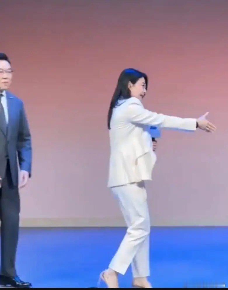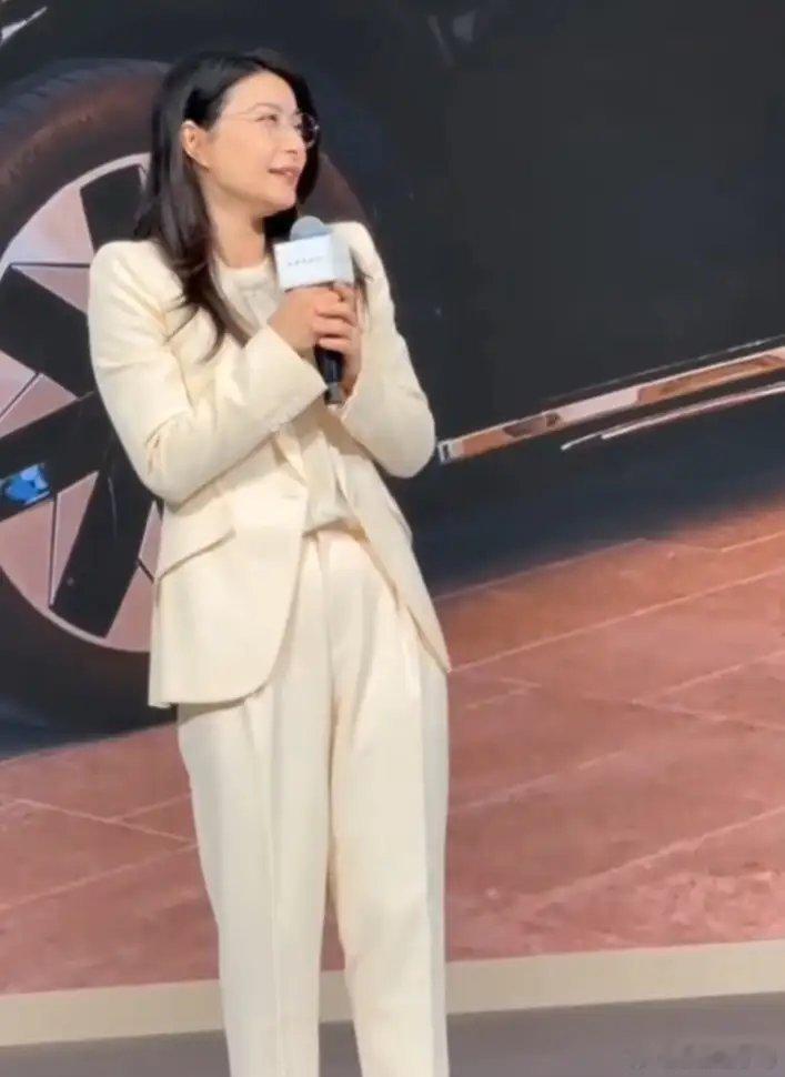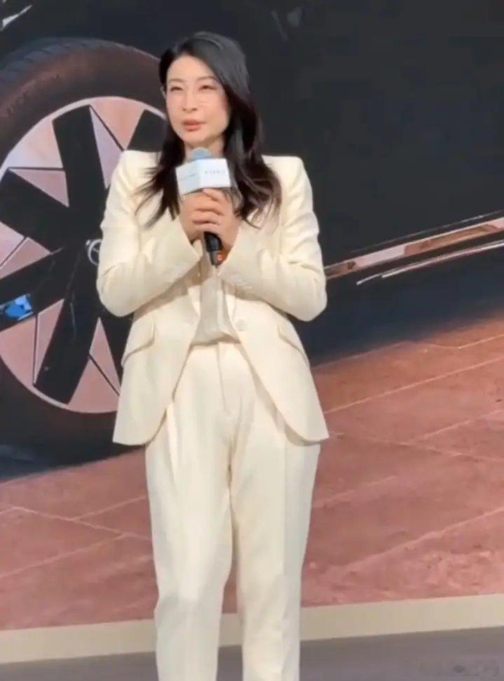 郭晶晶身着一身米色西装,身姿挺拔,自信满满。那股由内而外散发的大气与从容,仿佛与生俱来,让人见之难忘。