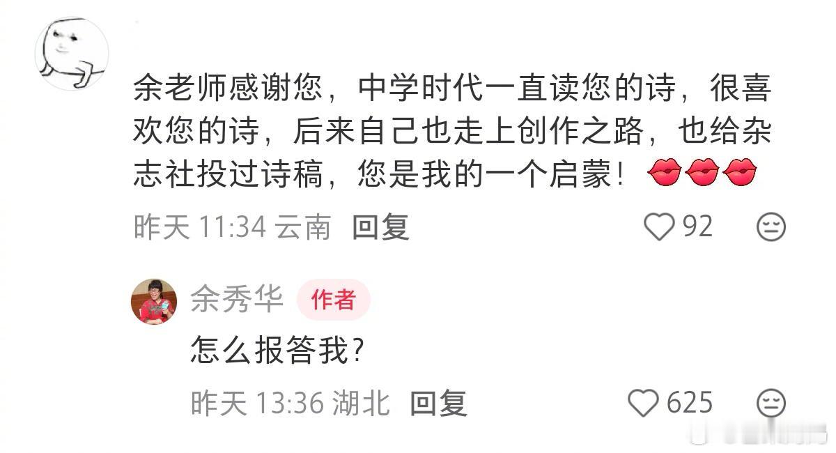 在余秀华的评论区走不出去了,完全是我的精神状态代表: