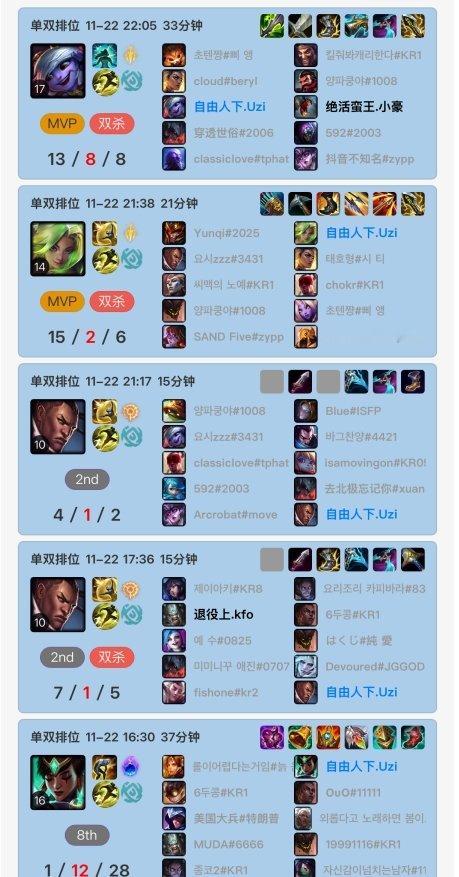 假瘾大 真复健?Uzi昨日狂打17把排位冲上韩服大师700分根据排位统计小程序统计显示,Uzi昨日韩服狂打17把排位冲上了韩服700分。