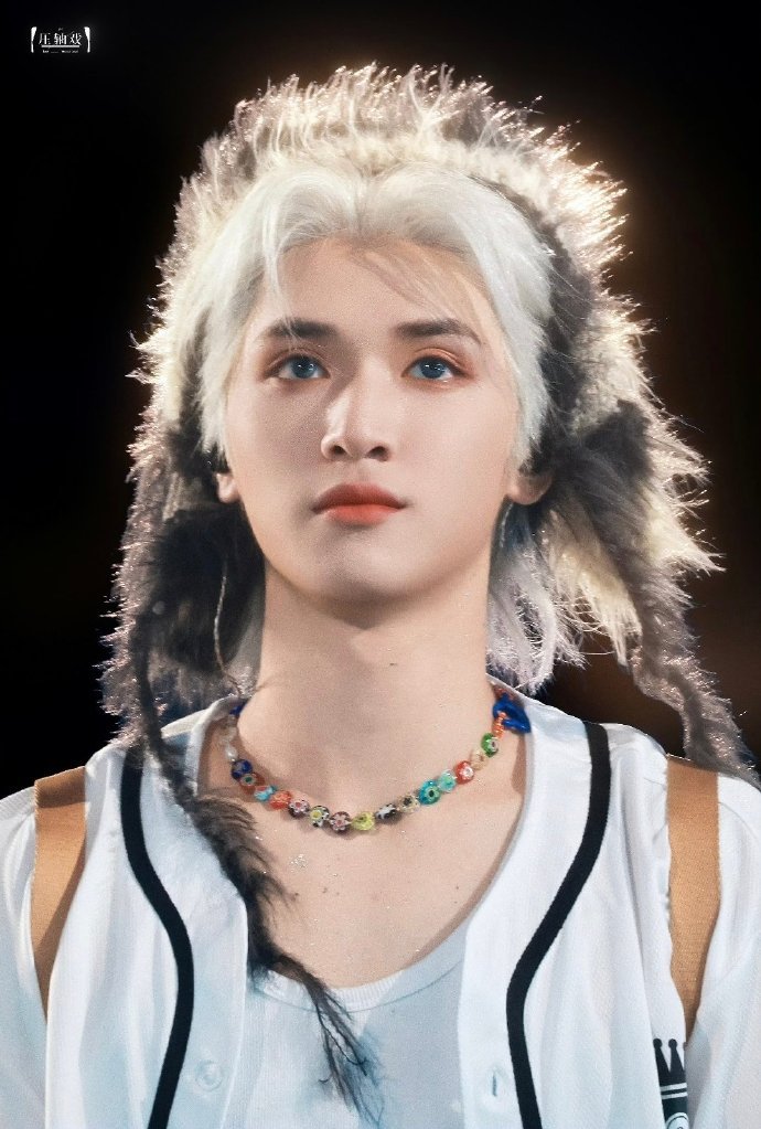 严浩翔六周年演唱会假发,严浩翔斜襟深V白内搭西装look,咱就说今晚我将继续期待