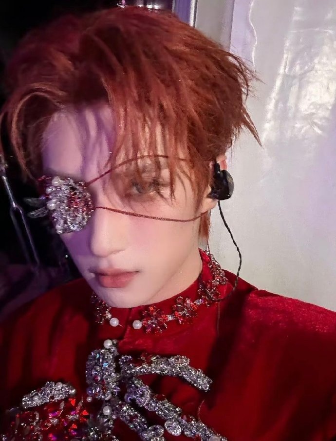 严浩翔六周年演唱会假发,严浩翔斜襟深V白内搭西装look,咱就说今晚我将继续期待和浩翔的见面啦~