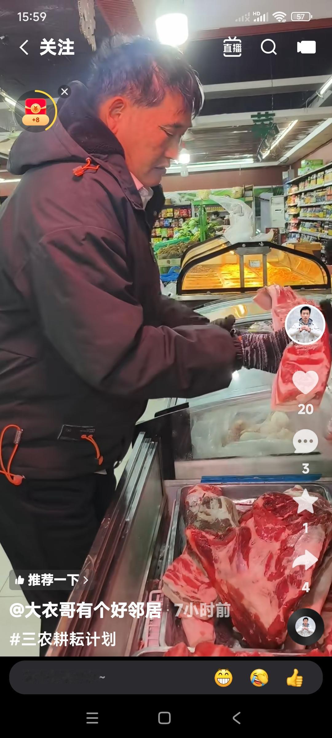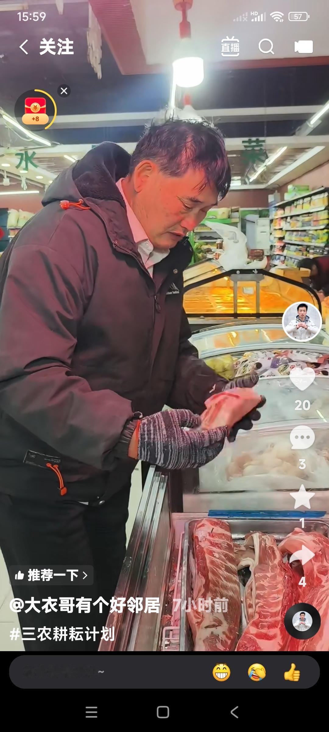 大衣哥朱之文是记吃不记打。 你那肚子都要爆炸了,还往肉上盯啊? 到了超市儿就往卖肉那地方使劲儿啊。 买的是五花肉,回家又要做红烧肉吃。 啥时候把那肚子吃爆炸了就不吃了? 不吃肉就受不了啊,馋鬼一个。