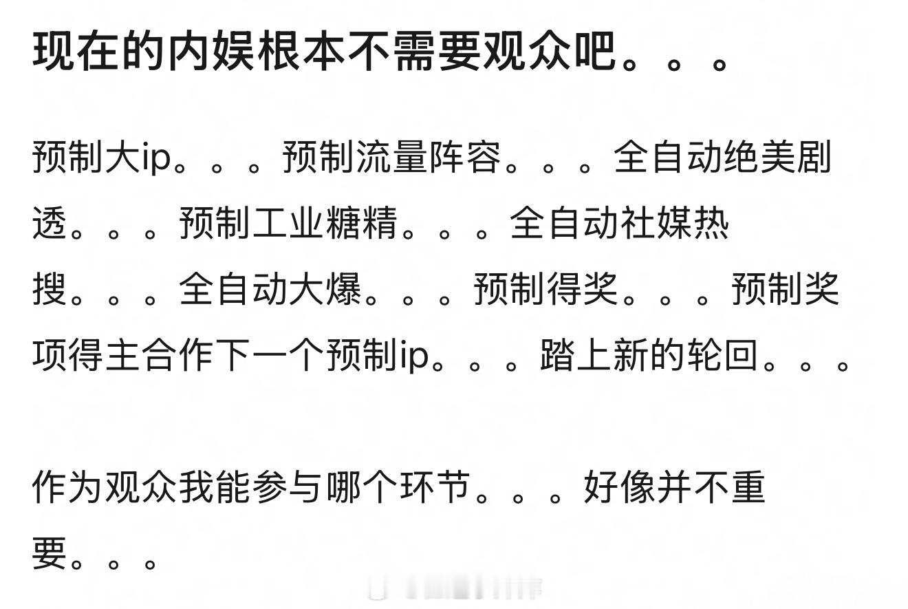 内娱不需要观众bb只需要观众掏钱PS:掏完钱也不许bb