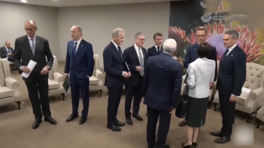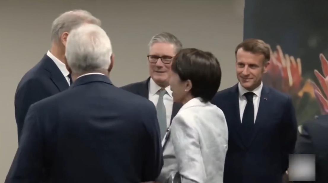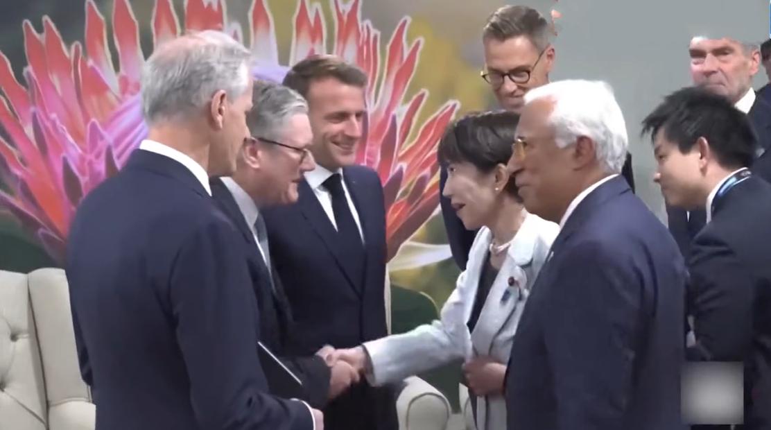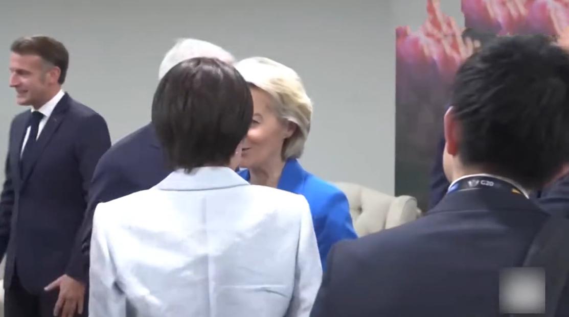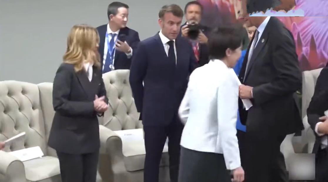 11月22日日本女首相与欧盟成员打招呼,不知道是摄影师漏拍还是女首相故意而为之,居然没有看到她与马克龙握手寒暄的镜头? 据悉,G7成员在南非聚在一起,日本女首相也被邀请了,在正式开会之前女首相和在场成员打招呼,感觉她和主要成员都打招呼了,唯独漏掉了法国总统,而且她与别人握手时法国总统就在她旁边。 女首相是第一次参加这样的场合,而且在场的人很多,估计是把马克龙给漏掉了,毕竟他们之前也没有见过面,并没有什么过节。