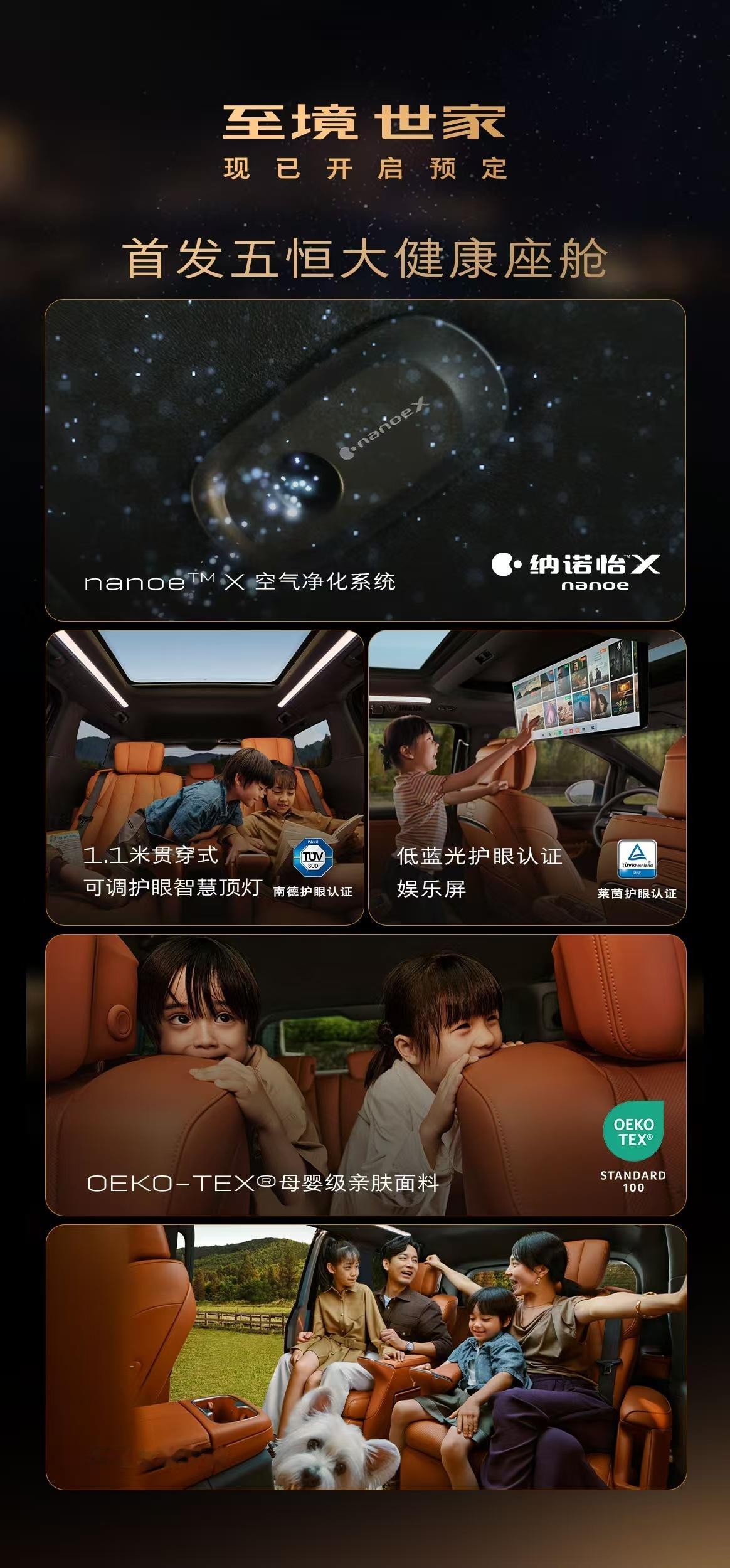 至境的第二款车型世家首次亮相广州车展,作为别克品牌的高端车型,他相对于GL8来说是另一种赛道,首先从技术细节看,行业首发的五恒技术——恒温恒湿恒氧恒洁恒静,为MPV高端市场打开的新的方向,把建筑级舒适标准搬进了车内。这种对标住宅与实验室的硬核思路,在车企中实属罕见,或许暗示至境意在打破车只是交通工具的传统认知至于多世家定位,我猜可能对应不同细分场景——比如家庭出游的温湿分控、商务接待的静氧优化、母婴出行的抗菌安全。至境若真能按场景精准切需求,或许能跳出价格战,在高端市场找到差异化切口