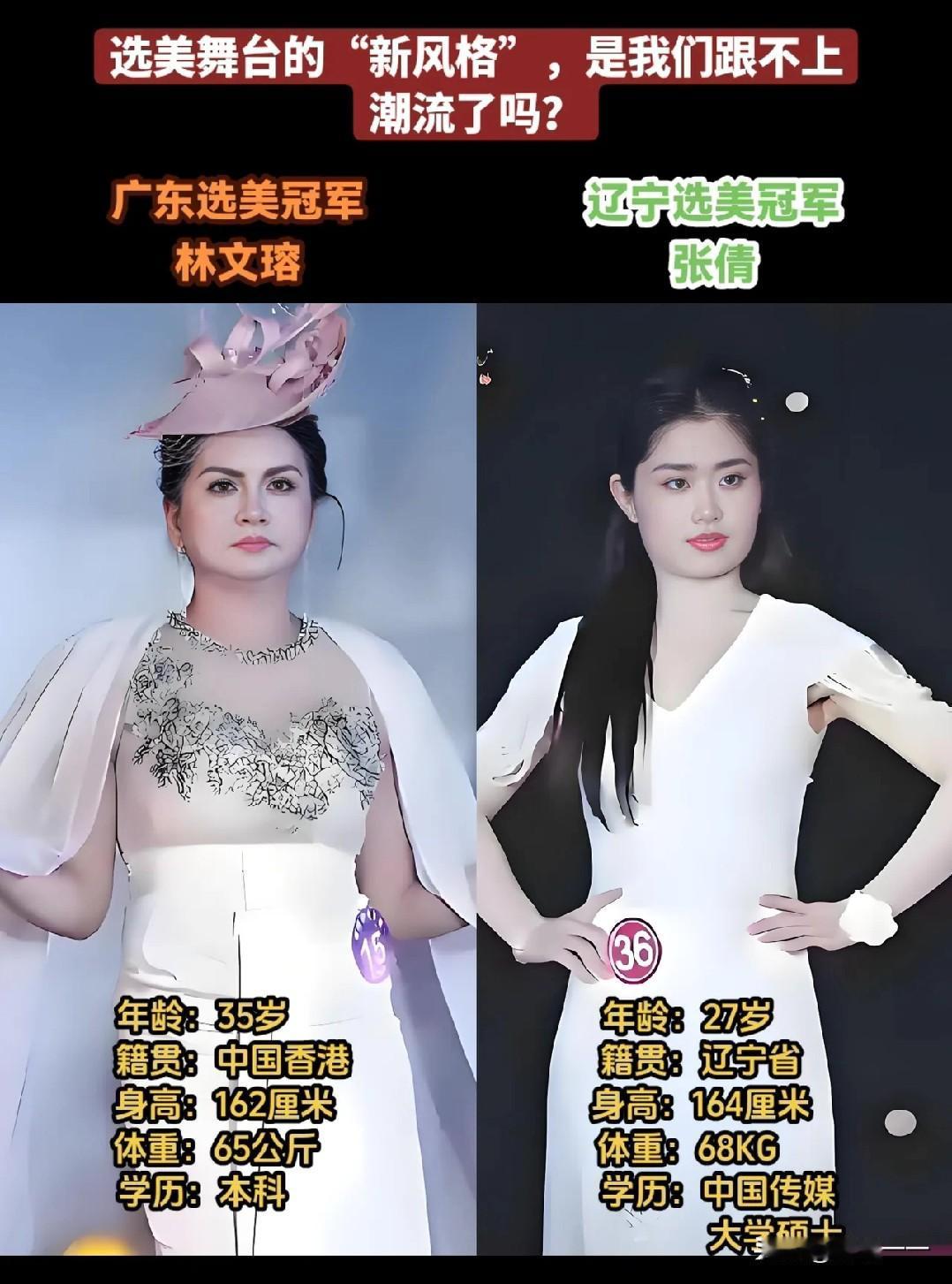 看看深圳这位选美选手,白到发光的皮肤,乌黑的齐耳短发,健康带有一点肉感的身材,气质大方又耐看……这完全符合大众的审美呀! 然而就算她美成这样,别说得冠军了,居然连个名次都没捞到。 再回过头看看辽宁的选美冠军张倩,广东的选美冠军林文瑢…… 同是选美,为啥有的省份这样都能得冠军呢?难道选美的标准不一样吗? 只能说各花入各眼啊,从这也可以看出,这届评委的选人眼光果然独特。 评委就是评委,和我们普通人的思维果然不一样,可能他们更钟情于多元化审美。