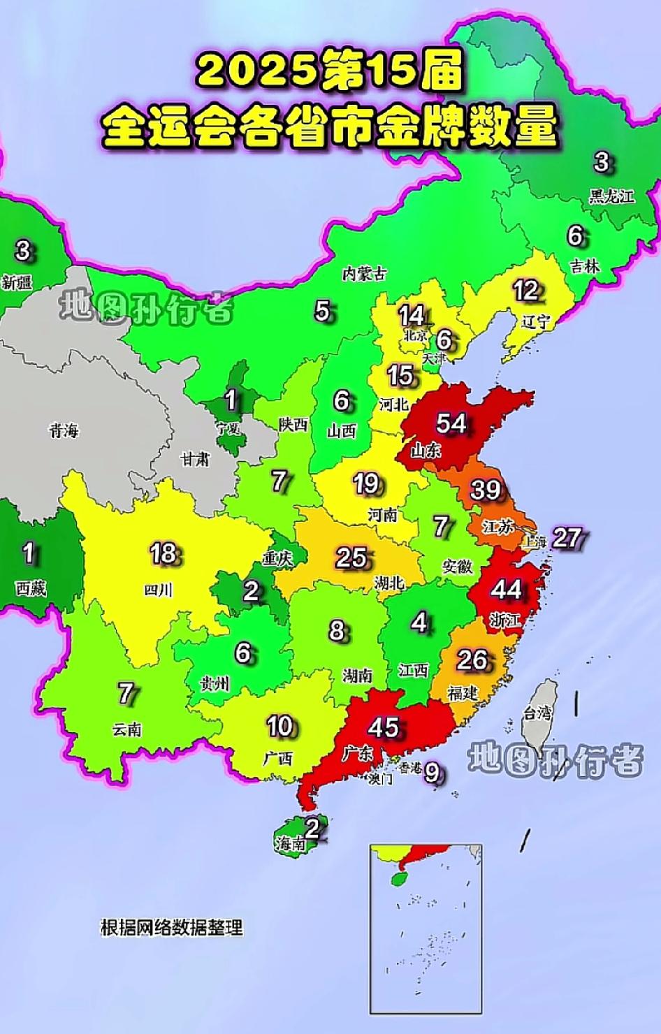 看看这次第十五届全运会的金牌地理分部图,沿海发达地区真的是遥遥领先,充分说明了,现代体育竞技水平是真的和经济发达水平密切正相关的,当然人口规模的基数大也是一个基础,但是经济发达,财政收入多,有钱投入到体育事业上是最关键的原因。 有一个省份金牌数很低让我有点意外,那就是江西省,竟然只拿到了四枚金牌,江西省的区位其实也是很好的,紧邻浙江、福建、广东三省,但多年来江西在中部地区的存在感也越来越边缘化了,不知道这是什么原因?