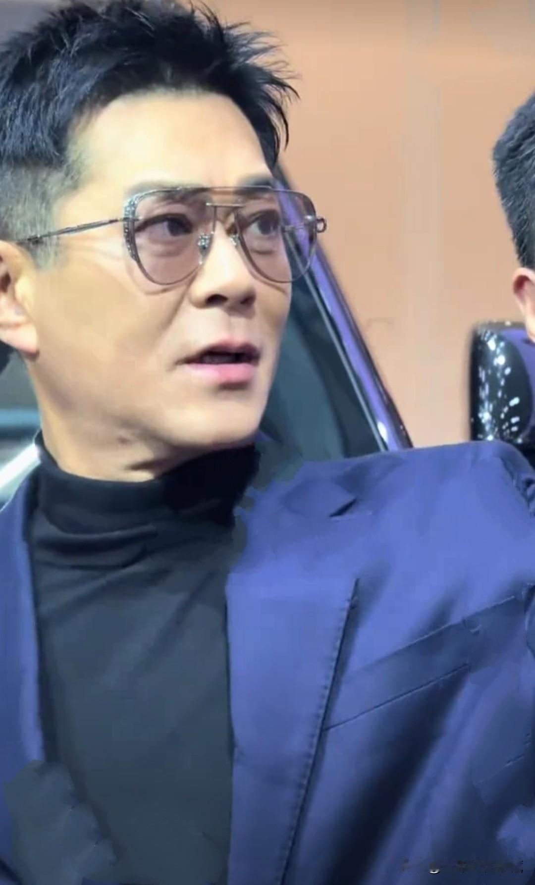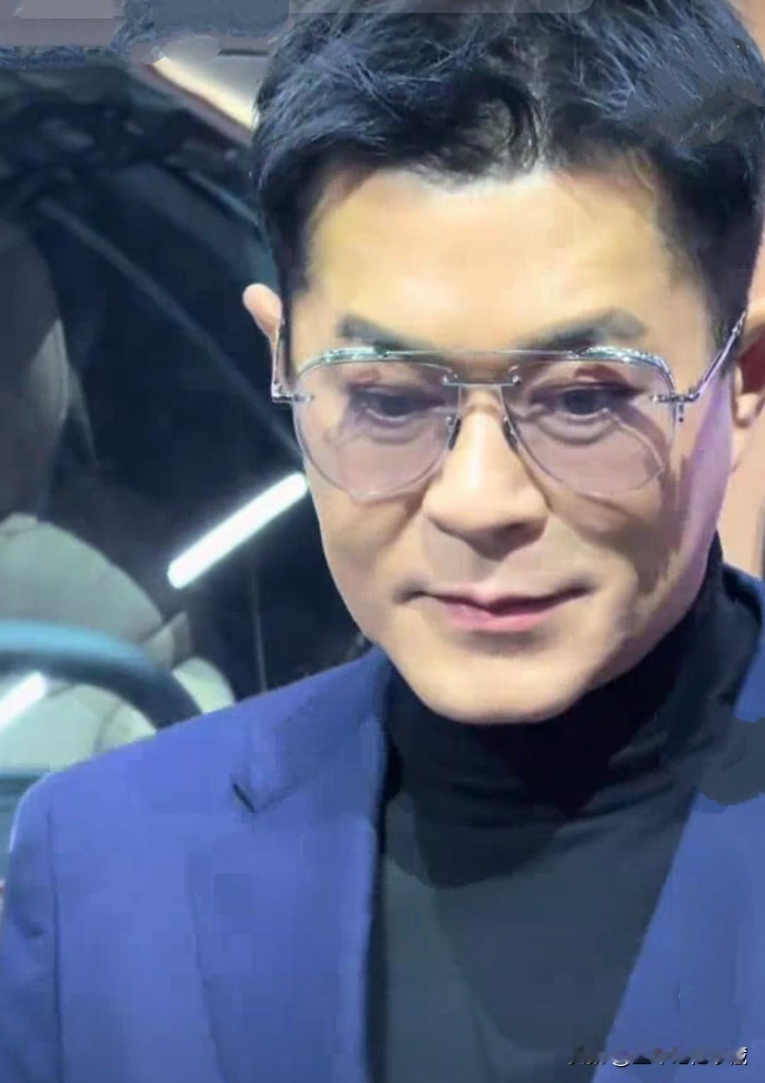 男神古天乐真实的状态,近日参加车展的古天乐,蓝色西装外套,内搭黑色高领毛衫,金边眼镜,头发乌黑浓密,脸型棱角分明,剑眉星目桃花眼,高挺鼻梁,唇形丰润,皮肤白皙光滑,身材挺拔有型,颜值回春,如今55岁的古天乐又回来了!