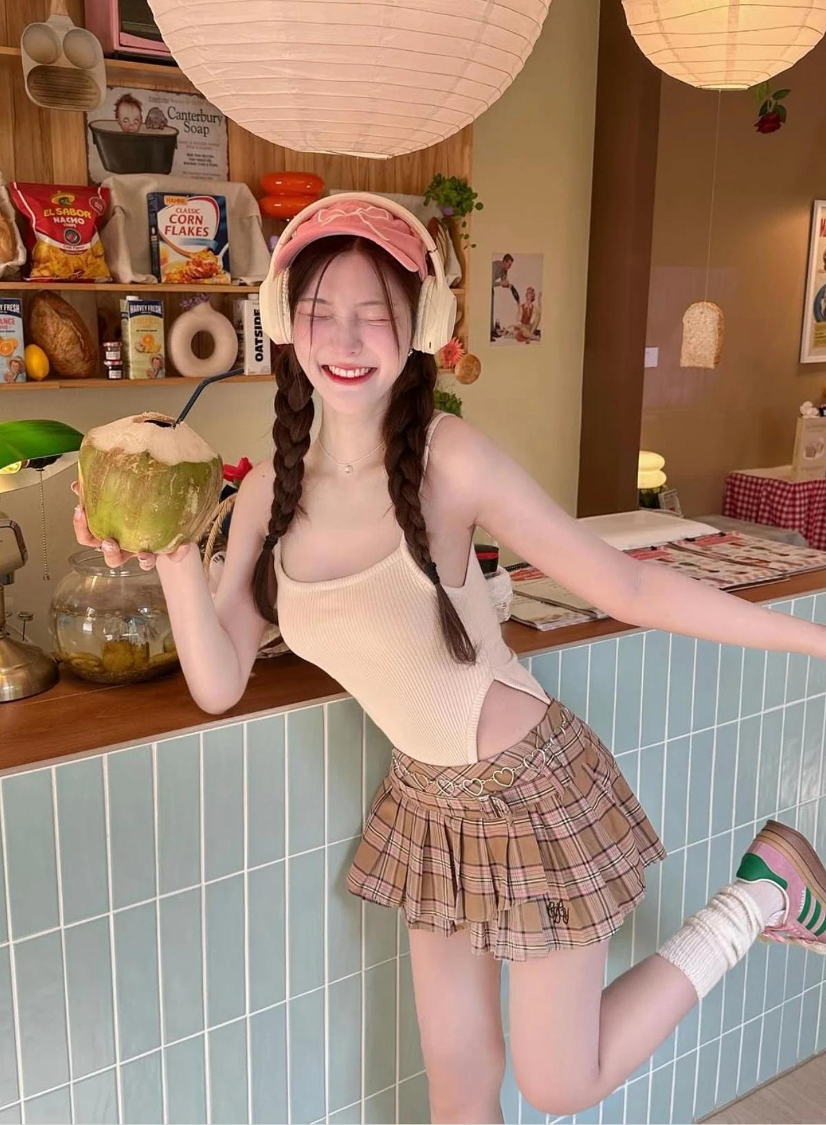 少女摄影|NO.0087期 低胸吊带包臀裙加上甜妹 所以只要衣服搭的好 公园里也