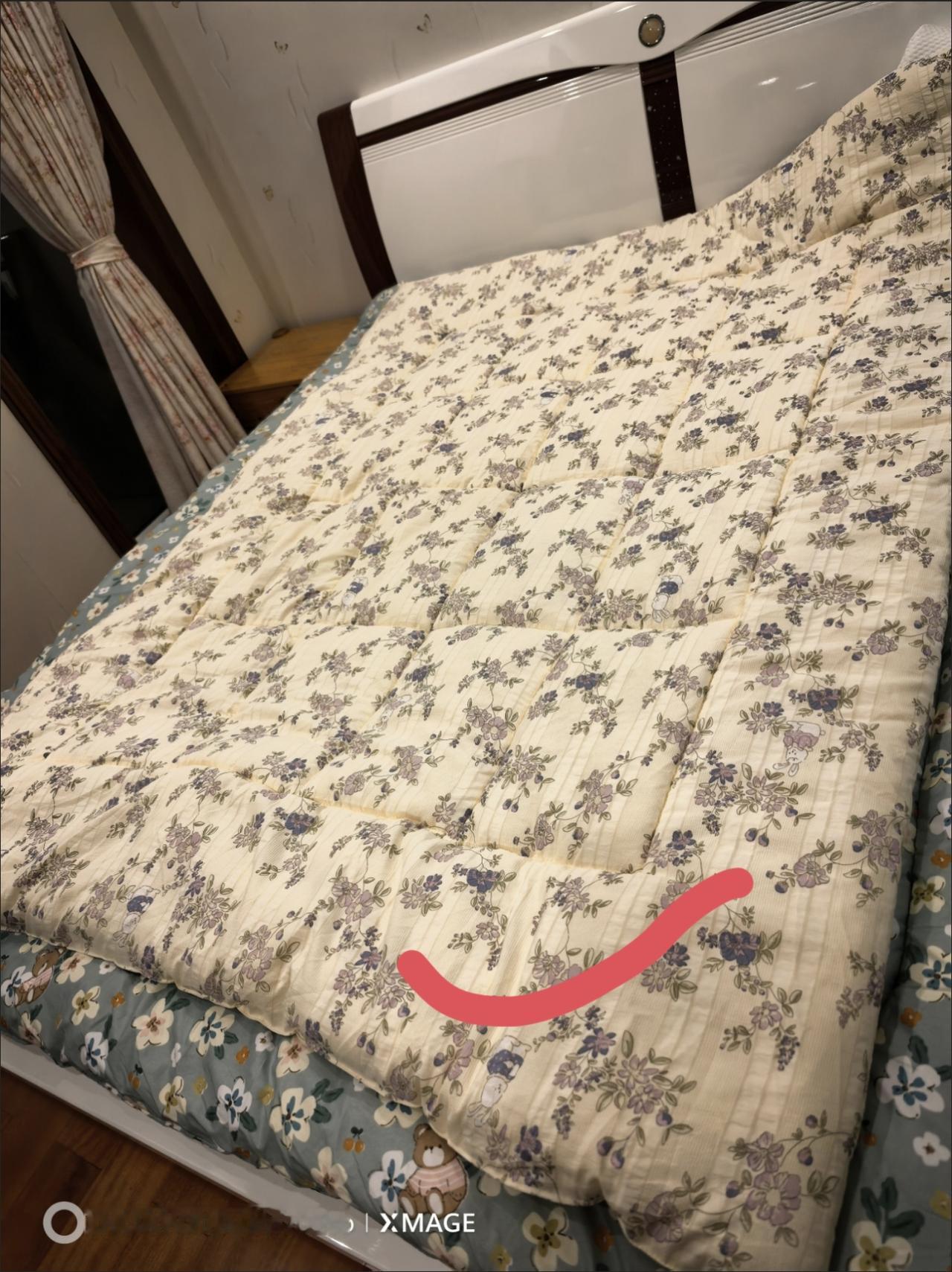 下午邻居告诉我,说附近有一家门面店搞活动,商店里卖床上用品,其中有个活动,就是用旧被子去换一床新被子,再给商家掏80块钱,有好多人都去了,邻居换了两床被子。 听邻居说的有道理,再说我也没有旧被子,去年从山东回来,把家里所有东西都换成新的了,邻居看到我没有被子,拿她家里的旧被子让我去换,我说不用,两个人也用不了那么多被子,邻居说这是个机会。 谁知道被子里是什么东西,摸着软乎乎的,我觉得买被子还是棉花被子暖和。 大家觉得图片里的被子值80块钱吗?