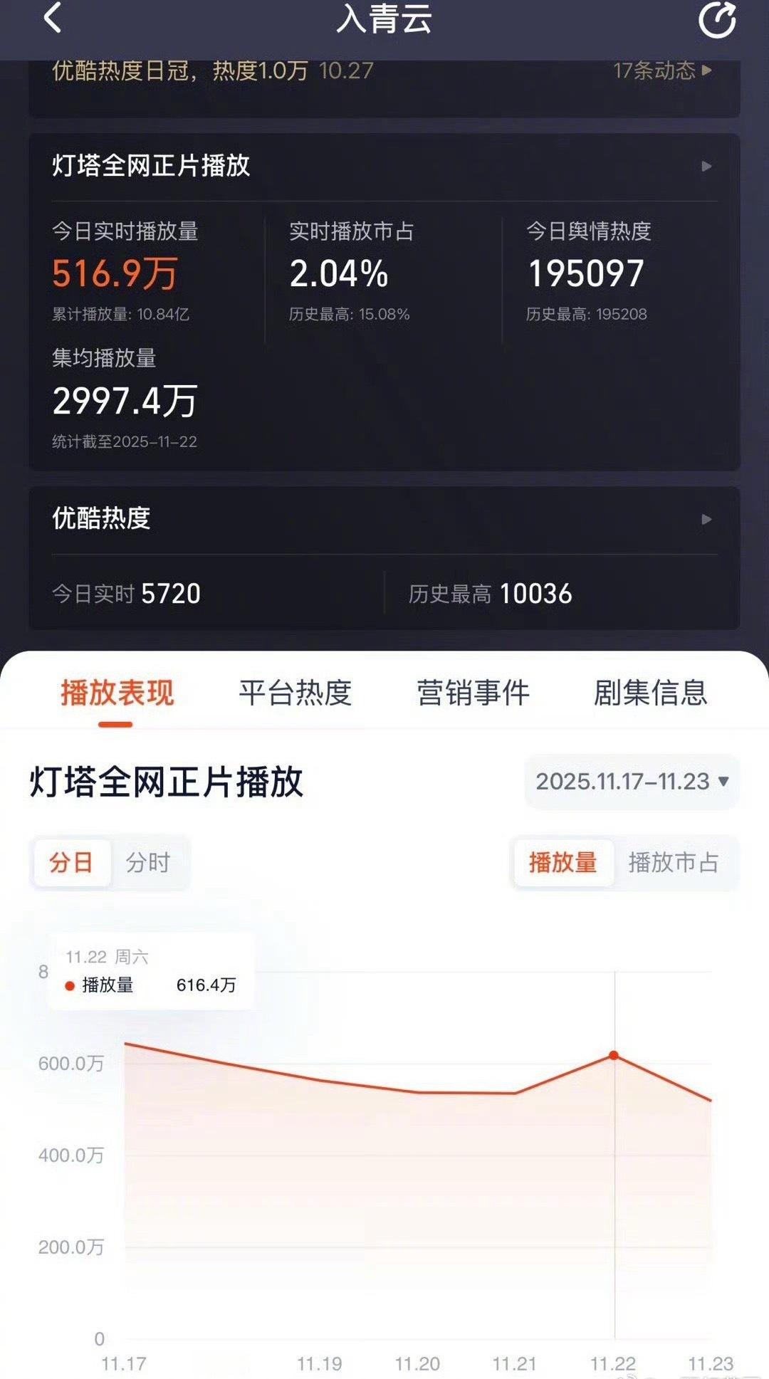 侯明昊和卢昱晓的《入青云》云合累积播放量已破2000,甚至这周末还在逆跌,你为了