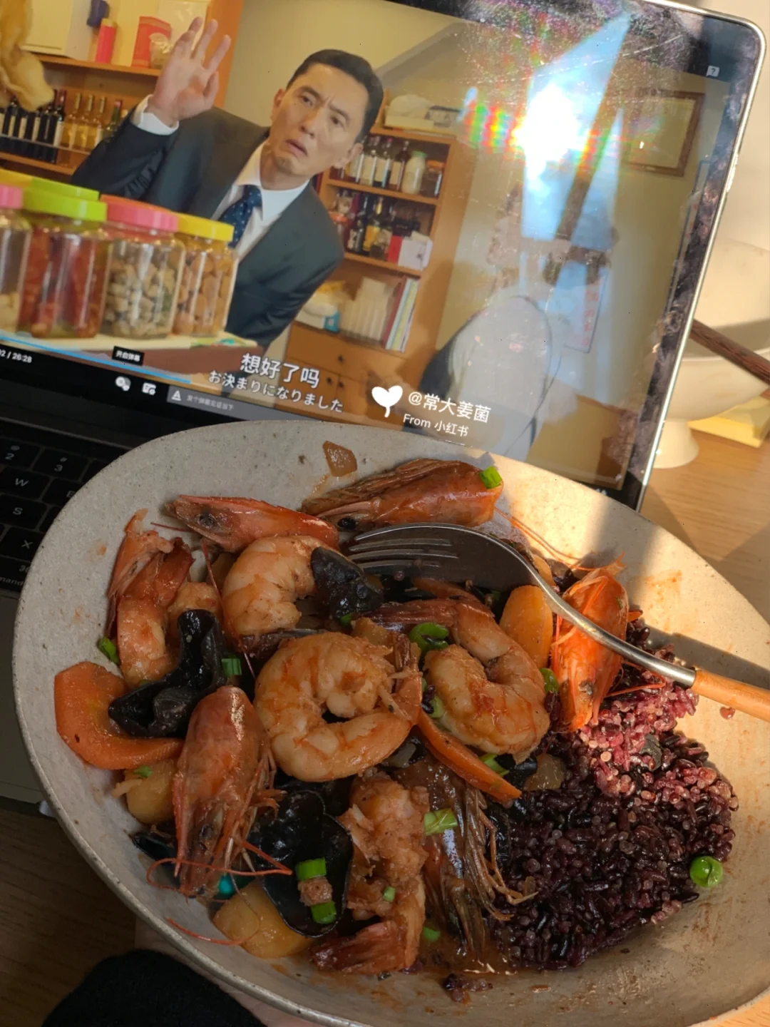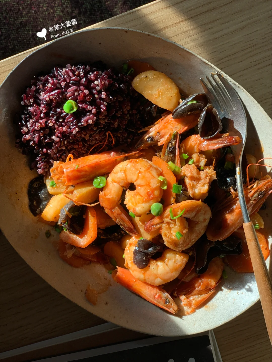 酱烧荸荠虾仁➕藜麦杂粮米饭🦐🥕🍚🧄🥢