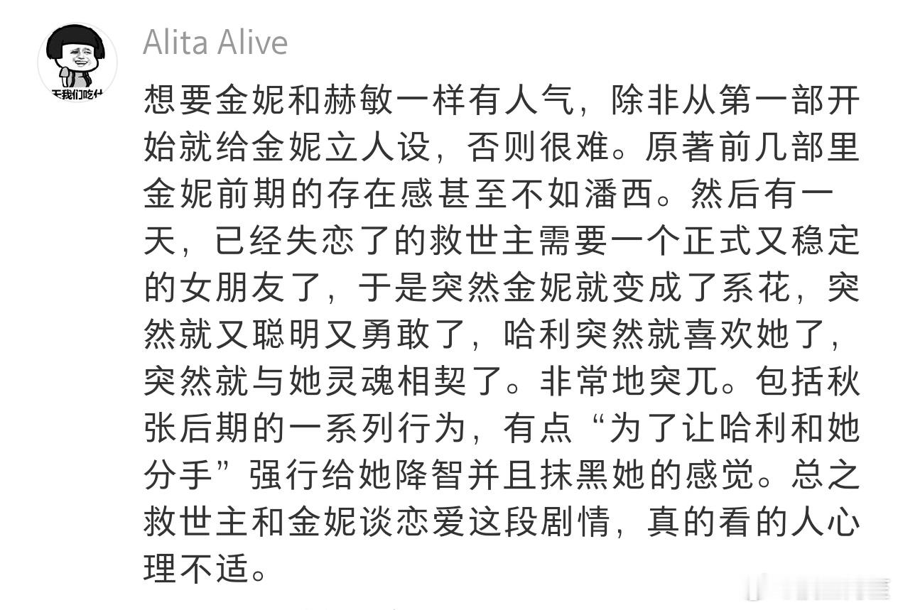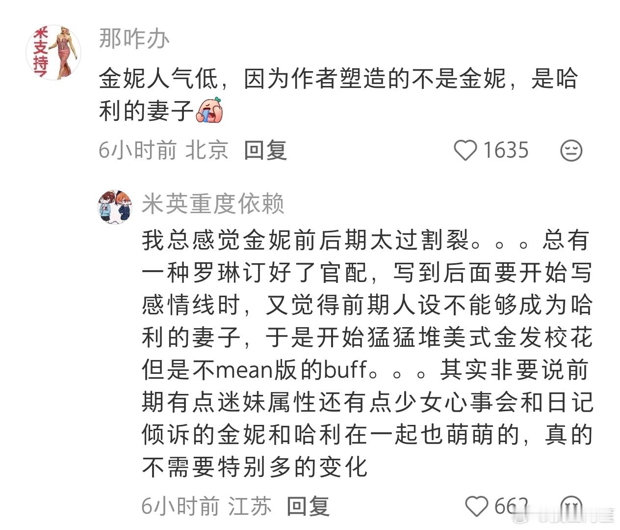 就写金妮是日向雏田那种人设其实就可以了……后期的金妮实在是太割裂了,像被穿越了一
