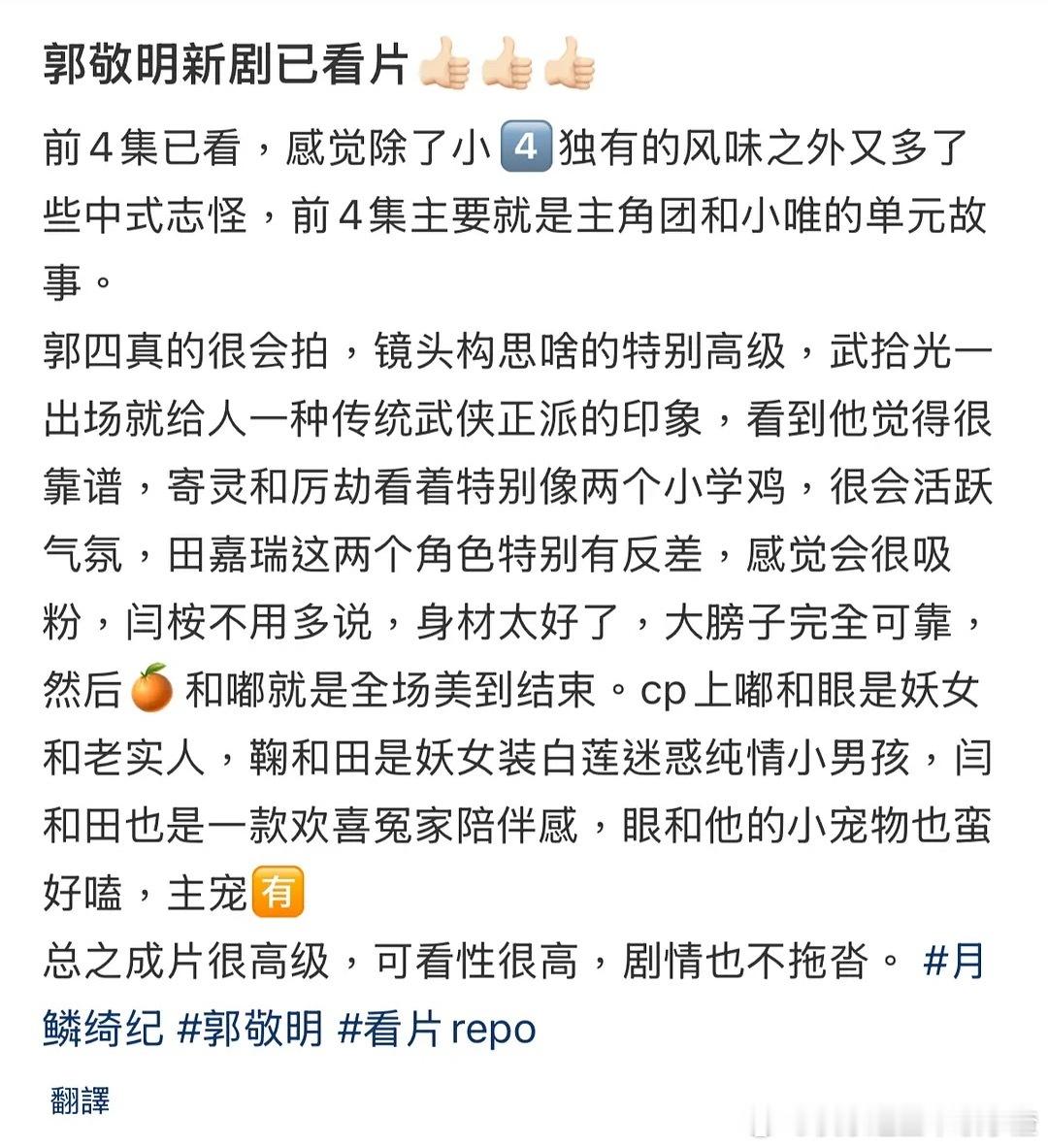 鞠婧祎 、曾舜晞、陈都灵 、田嘉瑞《月鳞绮纪》repo来了