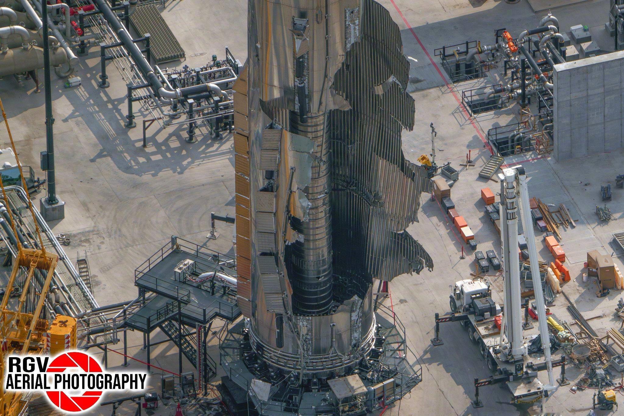B18液氧贮箱破裂后,让我们有机会看到Block 3的内部结构。图源:RGV Aerial Photography
