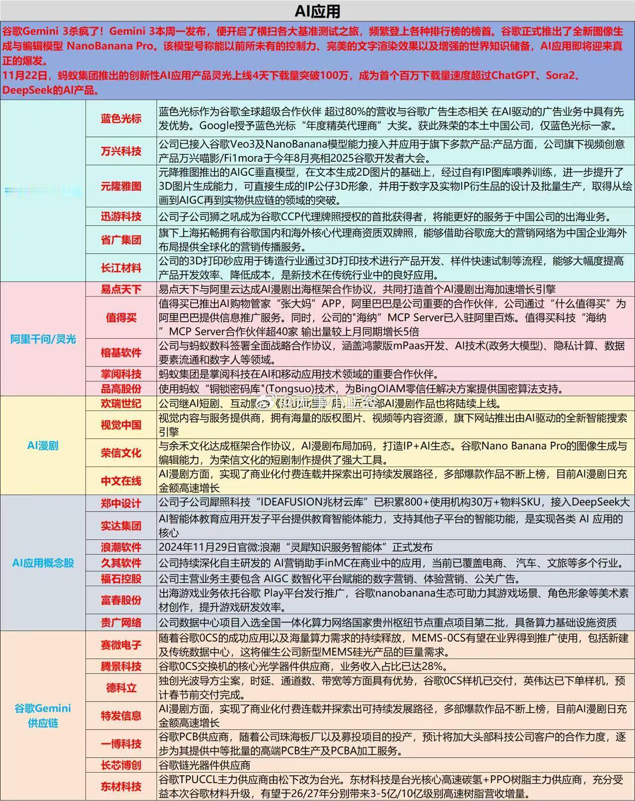 AI应用各细分概念股