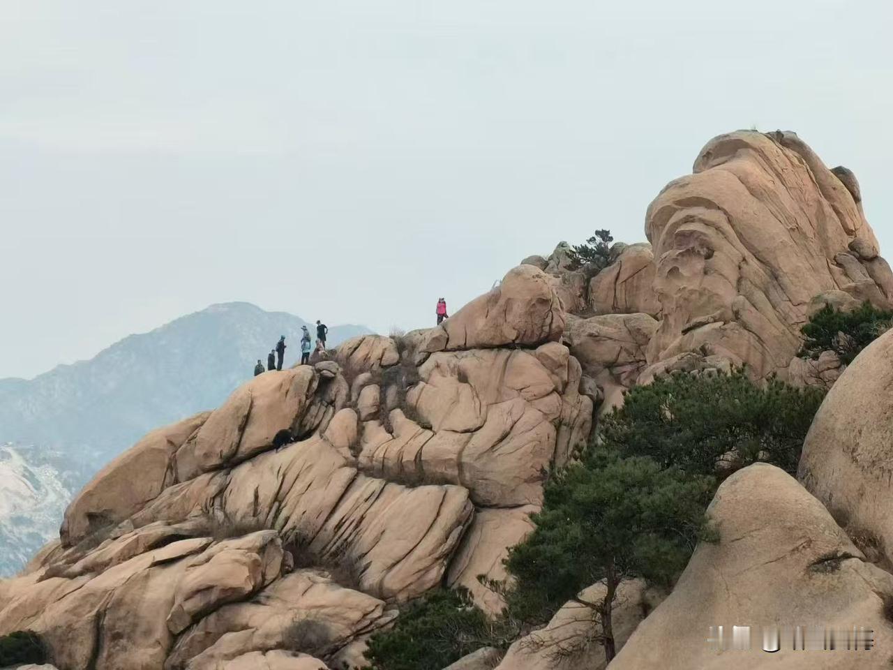 昨天陪朋友爬山随手拍的这张图,越看越有意思——这一大片歪歪扭扭的大石头,跟被老天爷随手堆这儿似的,糙得特有劲儿。 你看那几个哥们儿姐们儿,往石头尖儿上一站,看着都腿软,结果人还特悠闲地唠嗑。旁边那棵松树也够倔,石头缝里硬钻出来,绿得挺精神。 远处的山雾蒙蒙的,衬得这堆石头更像块“野蛋糕”。爬的时候累得想骂街,现在翻照片才觉出味儿:这种没修过的野景,乱得特鲜活,比景区里规规矩矩的石头好玩多了。