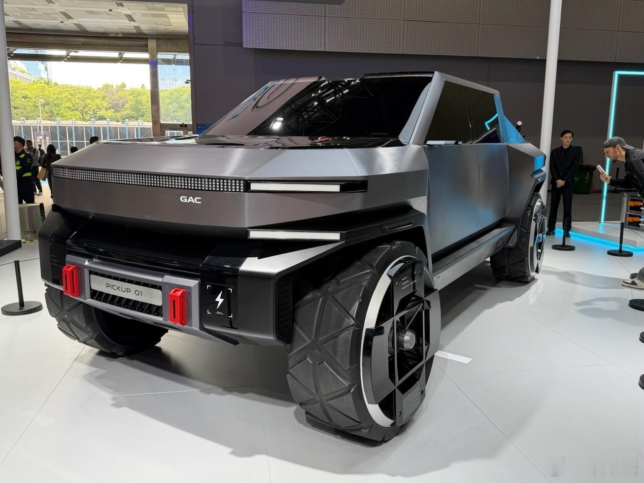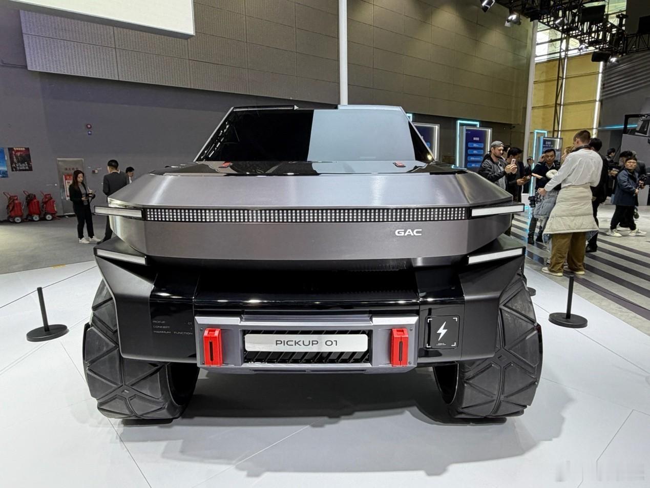 推出概念皮卡,外观棱角分明,线条硬朗,配备贯穿式LED灯组与悬浮车顶,造型极具未来感。作为电驱皮卡,其动力与续航值得期待。目前仍处概念阶段,预计2026年完成定型。PICK UP01被视为Cybertruck理念的延续,展现广汽在电动皮卡领域的前瞻布局。