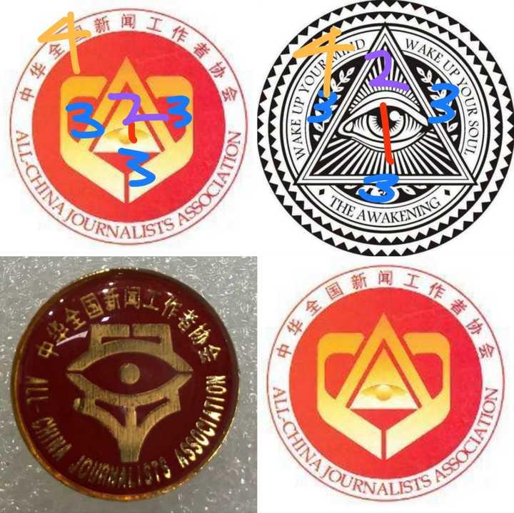 为什么我国也有这么多全视之眼标志? 如题,希望各位大神能科普解释一下,为大众解答疑惑,谢谢!以下图片只是少数几个例子,还有很多其他的。 B站 这个全国新闻工作者协会的标志。初始标志是左下角那样。当时的设计理念是背景是一本书和一支钢笔的结合体。暗示记者要看要写。 右下角是1997年修改的版本。给的解释是背景是一个爱心。但是没有解释新增三角形的含义。 目前通用的都是新版。
