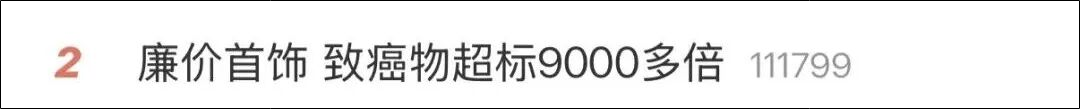 昨日,一则“廉价首饰致癌物超标9000多倍”的消息冲上热搜,引发网友关注。