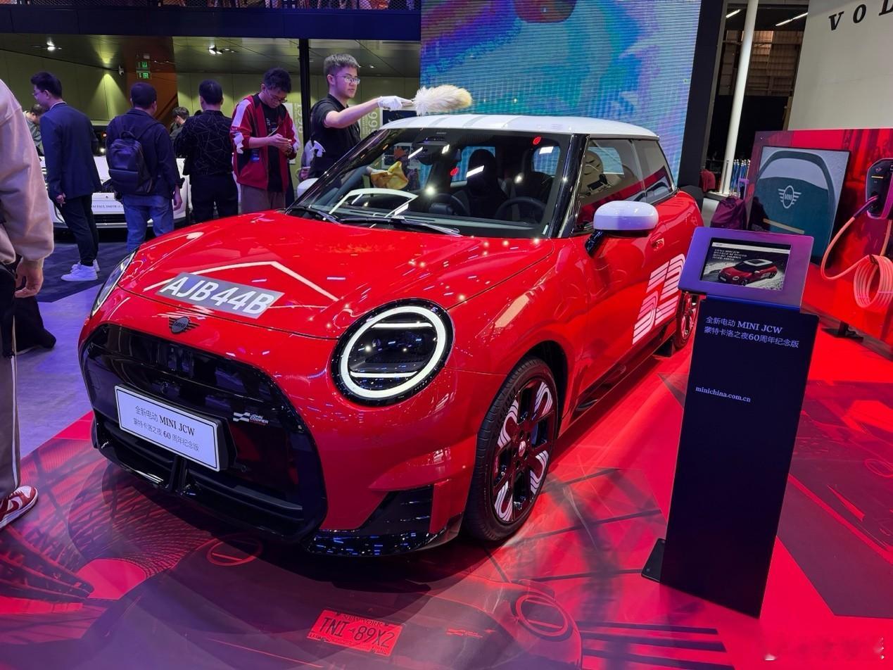 电动MINI JCW Cooper蒙特卡洛之夜版亮相,保留经典钢炮元素,如封闭式格栅与红色卡钳。内饰配备圆形OLED中控屏与动态HUD,兼具趣味与科技。前置单电机输出258马力,零百加速5.9秒,续航达450公里。细节处融入英式幽默,展现高性能与优雅并存的电动钢炮魅力。