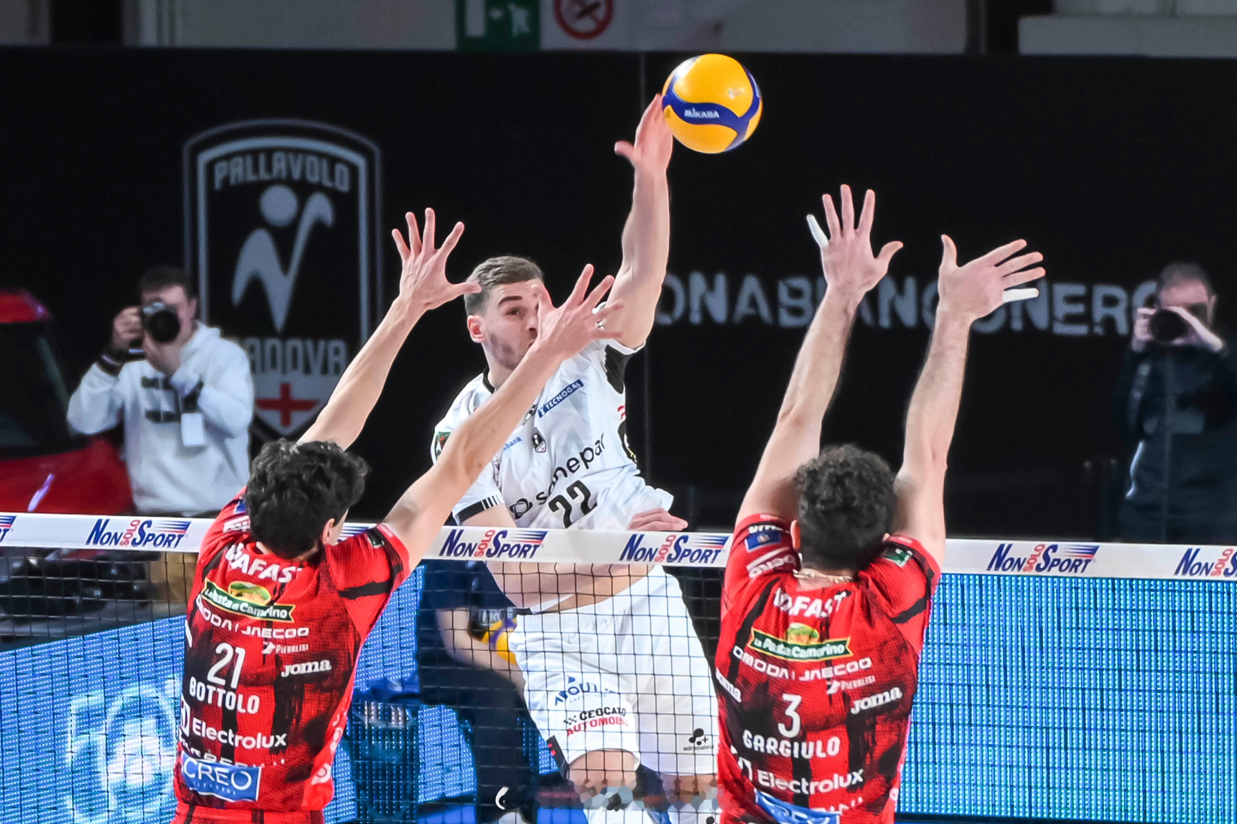【意超男排鲁贝2-3败走帕多瓦 摩德纳3-2险胜库内奥】11月23日,意超男排第七轮。奇维塔诺瓦客场2-3(22-25/25-20/25-23/23-25/17-19)惜败帕多瓦,尼科洛夫30分、洛普基和波托洛各12分、加久洛11分,MVP奥里奥利22分、马苏洛维奇21分、加尔迪尼和波洛各11分;摩德纳客场3-2(25-23/22-25/25-18/34-36/15-10)险胜库内奥,MVP达维斯基巴20分、布切格尔18分、桑圭内蒂和L-波罗各15分,主队塞德拉塞克和费雷尔各15分、扎伊采夫11分;皮亚琴察客场3-0(25-14/25-15/25-18)轻取格罗塔佐利纳。