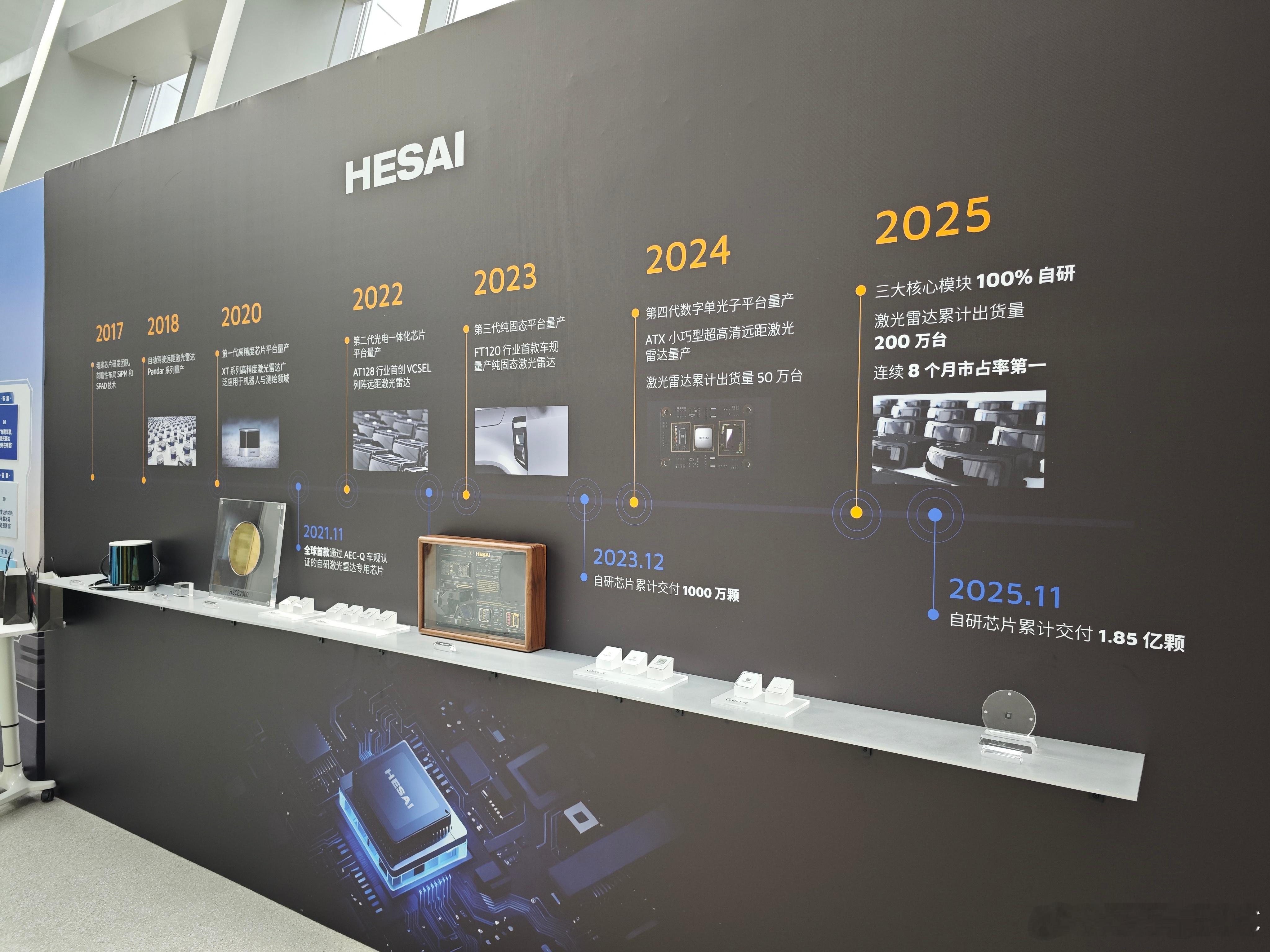 今天是禾赛技术开放日。中国激光雷达能弯道超车,其实核心原因就一个,芯片化。从光电一体化到纯固态,再到数字化收发,越往后越考验把功能压缩进芯片的实力。禾赛第四代芯片平台已经在 ATX 量产,相比 AT128,体积缩 60%、重量减半、功耗降 55%,性能还全面升级。今年 ATX 也拿下了最多的新定点。