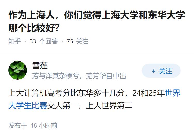 作为上海人,你们觉得上海大学和东华大学哪个比较好? 上大计算机高考分比东华多十几