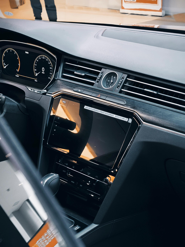 静态体验3000甄选款迈腾 说实话,第一次见到迈腾经典款时,那种“熟悉的仪式感”扑面而来,感觉就是B8迈腾复法了,可能是为了降低售价采用的策略,标志性的家族前脸搭配镀铬格栅,没有花哨的灯带或溜背设计,但就是透着一股让人安心的稳重感,仿佛在说:“我稳,但我不老。”拉开车门,第一感觉是经典从未走远,豪华与科技兼俱,中控台上那块瑞士进口机芯石英钟,指针滴答间仿佛能听见时间的沉淀;贯穿式空调出风口和门斗植绒处理,细节里藏着汽车工匠人把实用做到极致的执着。坐进驾驶位,座椅包裹性很扎实,皮质面料很贴身不塌,包裹性很强,久坐不累,连方向盘握感都透着严谨二字。整车重点来了——空间!2871mm轴距与超短前后悬的设计,让后排膝盖能塞进三拳,地台几乎全平,坐三个成年人胖子也不挤。后备箱533L的容积真不是吹的,行李与露营装备想怎么装就怎么装。