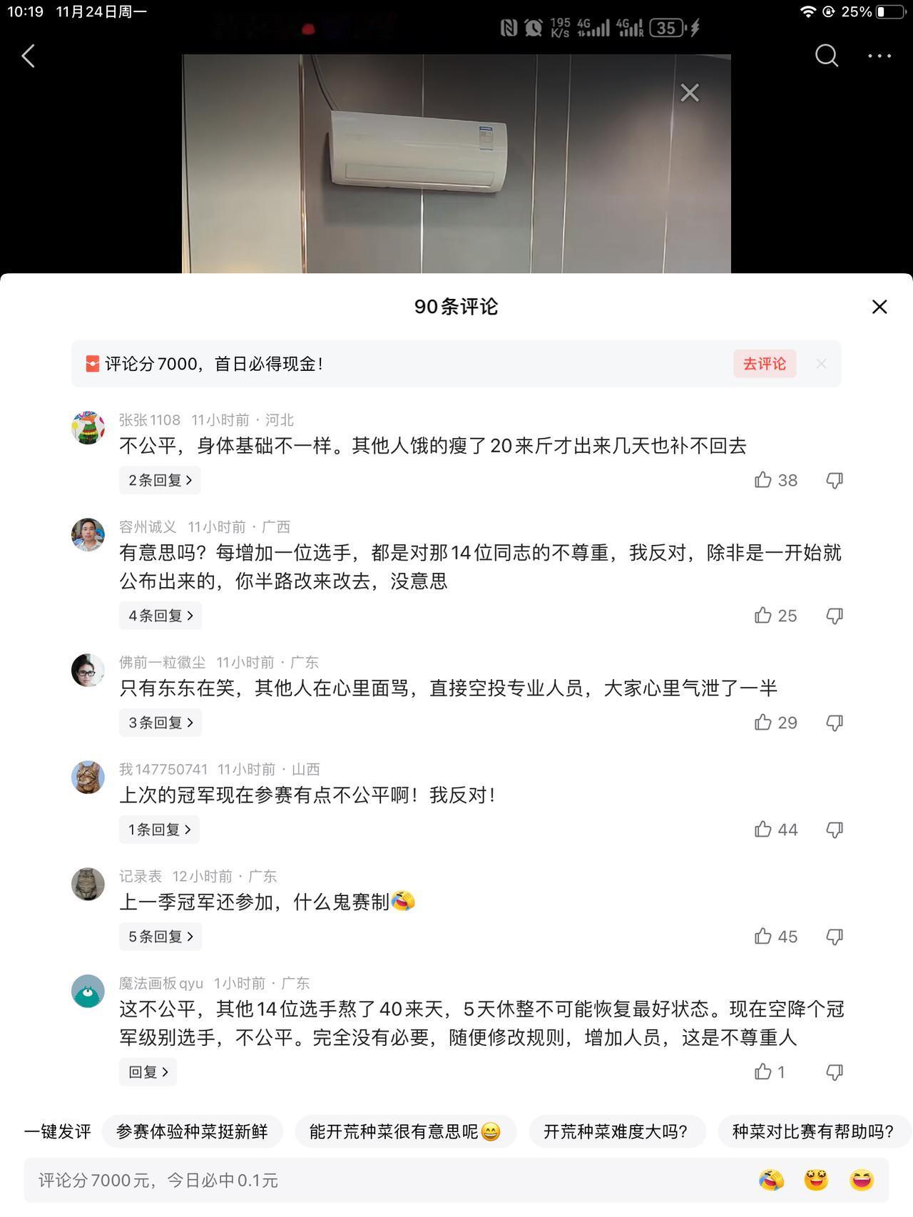 荒野求生太扯淡了!决赛14位选手,你绝对想不到,第一季的冠军杨冬冬天降节目组决赛,变成15人PK了。别的选手饿了41天,只休整五天,你吃的圆溜溜的,要跟这14名选手抢冠军,那还有公平可言? 你说改规则,好,莫不是怕零下的天气冻死选手,道友一直没有🔥,而改的规则,14人集体挺近决赛,奖金都发了。不说你。 第一届的冠军荣誉和奖金都拿到了,空降第二季的决赛,这是多没有原则的事?你不想奖金外流,你直接发给他好了,还比赛做什么啊?没意思,随资本家乐意,怎么搞都对!