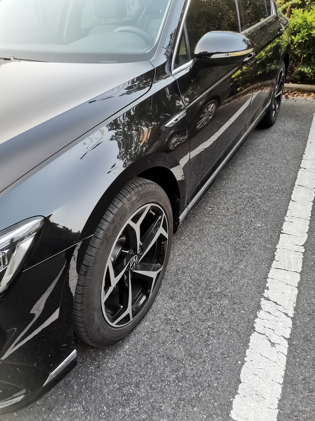 车子是自己选的轮毂也是 轮毂的样式感觉挺有运动感,不过开起来动态的情况下是不是更有利于车子往前行驶就不得而知了
