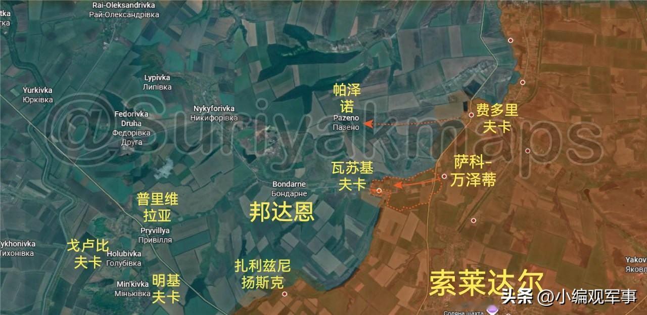 11月23日俄乌最新战报: 1.红利曼方向前线: 俄军继续扩大对斯塔夫基村周边的控制区,夺取了西部仓库和一些战壕(图一)。 2.索莱达尔方向前线: ①在过去三周的阵地战中,俄军占领了瓦苏基夫卡村的东部地区(图二)。 ②过去几天里,俄军向帕泽诺村发起了新的进攻。尽管突破了乌军防线并到达了村庄的边缘,但战斗仍在继续,目前谈论其已在该村内巩固阵地还为时过早(图二)。 3.沙霍韦前线: 过去两天里,俄军控制了沙霍韦村的大部分地区(清剿行动仍在继续,以完全确保该村的安全)(图三1)。 4.红军村和季米特洛夫前线: ①俄军占领了红军村和季米特洛夫之间的战壕(图四1),并继续在季米特洛夫市区推进(图四2)。 ②俄军继续在罗金西克镇夺回失地,重新控制了35号学校和中央公园(图四3)。 5.第聂伯罗彼得罗夫斯克州前线: 俄军完全控制了维德拉德涅村(水獭村)和季赫村,并重新夺回了盖村(图五)。 6.扎波罗热州前线: ①过去一周里,俄军向新达尼利夫卡发起进攻,占领了南部郊区,并攻入了该村,目前战斗仍在继续(图六)。 ②过去两周里,俄军继续发起进攻以攻占斯捷普诺希尔斯克市,并实施了相对成功的包围行动。乌军继续控制该市大部分地区(图七)。 ③乌军在消灭普里莫尔斯克镇中部的俄军侦察小组后收复了该地区(图七)。 顿涅茨克局势 顿涅斯克战况 顿涅茨克战场 顿涅茨克争夺战 顿涅茨克攻势 波夫罗夫斯克 顿涅茨克战役 如何评价俄军无人机放弃攻击护送乌士兵投降