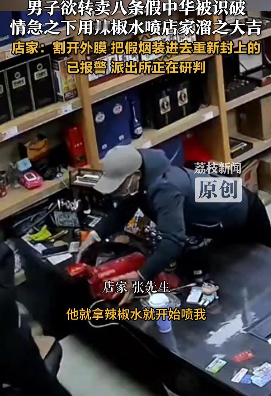 这胆子也太大了!江苏徐州,一男子走进烟酒店想要转卖8条华子,可老板一眼就看出烟有问题,把问题戳破后老板要把烟扣下处理,没想到,男子突然从兜里掏出辣椒水喷老板,随后抱着烟溜之大吉,老板:已经报警,派出所正在研判 老板张先生介绍,这名男子进店时戴着帽子和口罩,把自己捂得严严实实,刚进店就询问:老板收不收烟,我这有八条中华,说罢就把烟摆在了桌面上 老板张先生接过烟,仔细一看就发现了问题。这八条烟的外包装虽然看起来没什么异样,但两头的薄膜被人为割开过,里面的真烟早已被调了包,换成了假烟 这种手法不算新鲜,但做得这么明目张胆,还拿到店里来转卖,实在有点嚣张 张先生没犹豫,直接戳穿了对方:你这烟有问题,全是假的。男子一听,立马想把烟收回去走人。但张先生没让步,他打算把烟扣下来,进一步处理 谁也没想到,就在这时,男子突然从口袋里掏出一瓶辣椒水,对准张先生的眼睛就喷。张先生一时睁不开眼,男子趁机抱起桌上的八条假烟,转身冲出店门,溜之大吉 对此,有网友表示:这胆子够肥的,就凭他这个辣椒水,就知道是早有准备,必须严惩 但也有网友说:发现是假的不收就得了,何必没收呢?找着麻烦 其实在这个事上,我觉得老板的做法没问题,站在烟酒店老板的角度,遇到假烟选择扣下并报警,是很多正规商户的常见做法。假烟流通不仅扰乱市场,更损害消费者权益。如果每次都“放一马”,只会助长这类人的气焰 而从那名男子的行为来看,他不仅卖假烟,还随身携带辣椒水、主动攻击他人,这已经不是普通纠纷,甚至已经超出了普通欺诈的范畴 希望警方能早日查清事实,依法处理,也让更多想钻空子的人知道:违法,终究是要付出代价的