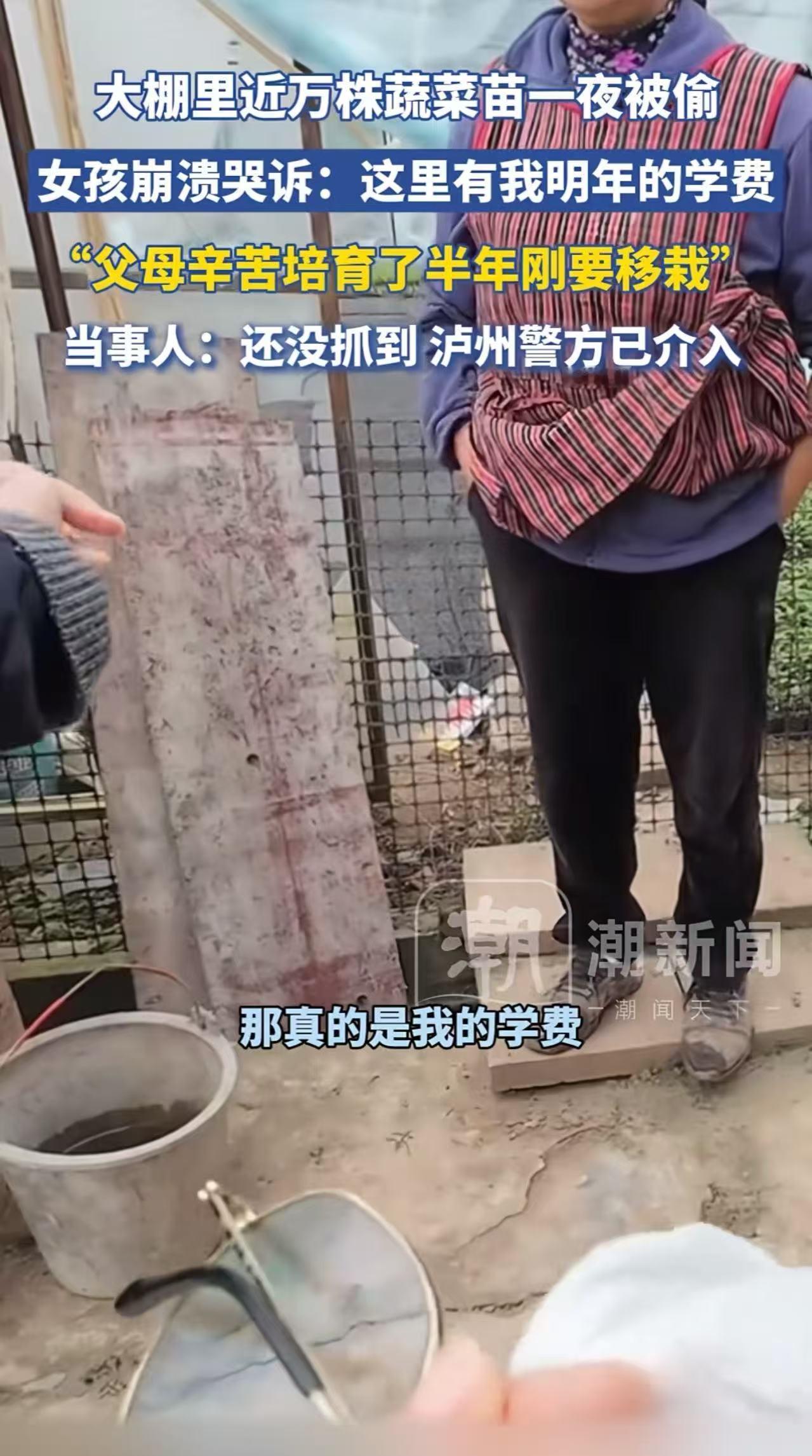 大棚里近万株蔬菜苗一夜被偷,女生崩溃爆哭:“这里是我明年的学费,父母辛苦培育了半年。家里条件不好,每年就等这笔钱过日子!”网友:偷农民菜苗,断孩子学路。这样的人遭天打五雷轰吧! 四川泸州,小邓的父母是本本分分的农民。这大半年来,他们每天起早贪黑浇水施肥,把全部的希望都寄托在了那个种着1万多株蔬菜苗的大棚里。 可谁能想到啊,就在他们准备移栽,眼看着希望就要变成收获的时候,一觉醒来,大棚里面竟然空空如也了,近万株的菜苗一夜之间被人偷了个精光! 警方抵达现场时,小邓情绪失控大哭起来,她说:“这里面有我的学费啊……我爸妈凌晨四点就起来浇水,夜里还打着手电查看苗情。这些苗子成长周期约半年,他们每天细心培育。现在全没了,他们坐在田埂上,半天说不出一句话……” 目前,泸州当地警方已立案调查,可是小偷走的地方特意避开了监控,暂时还没有抓到人! 这些菜苗,对于小邓一家来说,那是大半年的心血,是全家人的主要收入来源啊,还是一个孩子走出农村的希望! 此事引发热议,有网友说, 能避开监控的,还知道女孩一家的作息时间,肯定是对环境特别熟悉的人,或者是前面在监控下出现过的人! 也有网友说,听到那句是我的学费,心好痛,眼泪不由自主就出来了!如果找不回来,我愿意帮孩子出这笔学费! 还有网友说,我小的时候家里养的猪,下了九头猪仔结果一夜被人全偷了,那是我和我姐的学费,妈妈知道了哭了好久,最后才知道就是同村的人偷的,但没有实证就算了,过了两三年,那个偷猪人也去世了,所以恶有恶报,真的只是时候未到而已! 万株菜苗可以重新种,但被偷走的半年光阴、被摧毁的求学信心拿什么弥补? 说到底,这种偷菜苗的贼,不只是缺德,更是对底层人最后一点希望的践踏! 农民靠天吃饭,靠地活命,半年心血被一锅端,连孩子读书的钱都偷,这种人就算不遭天打五雷轰,也该被戳一辈子脊梁骨。社会要是连这种事都管不了,那还谈什么公平正义?希望警方尽快破案,让小偷为这份“恶”付出代价! 而那些伸向菜苗的黑手,请记住:你偷走的不是几棵植物,是一个家庭的未来,是一个女孩的人生,更是一个社会最基本的良知。这样的恶,天理难容!