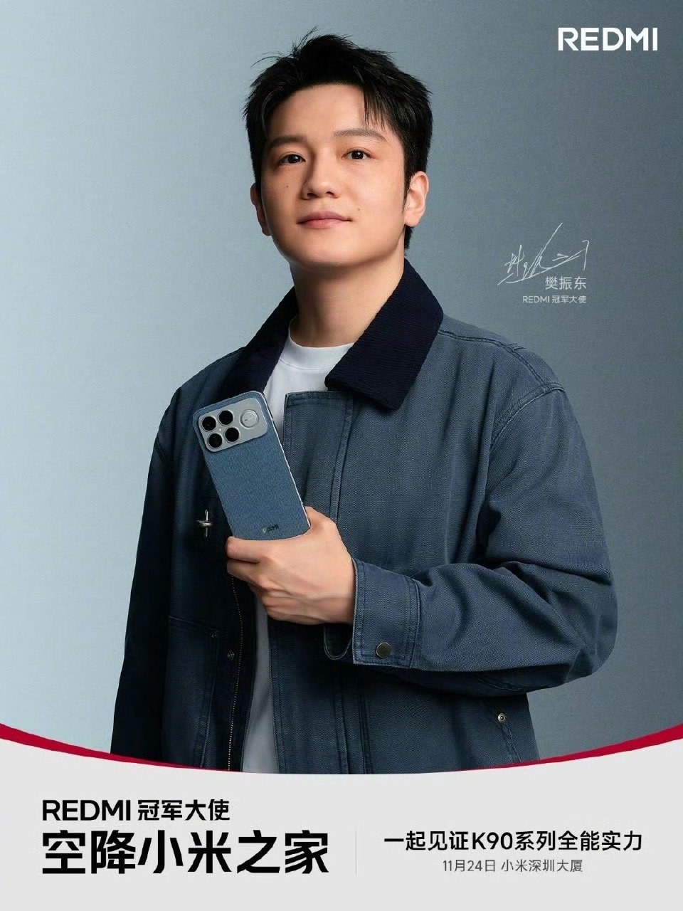 还是年轻好啊,看着很嫩。虽然樊振东已经成名十几年了,但实际上他才28岁。今天的牛仔穿搭也很时尚年轻,跟红米K90 Pro Max的后壳也很搭。