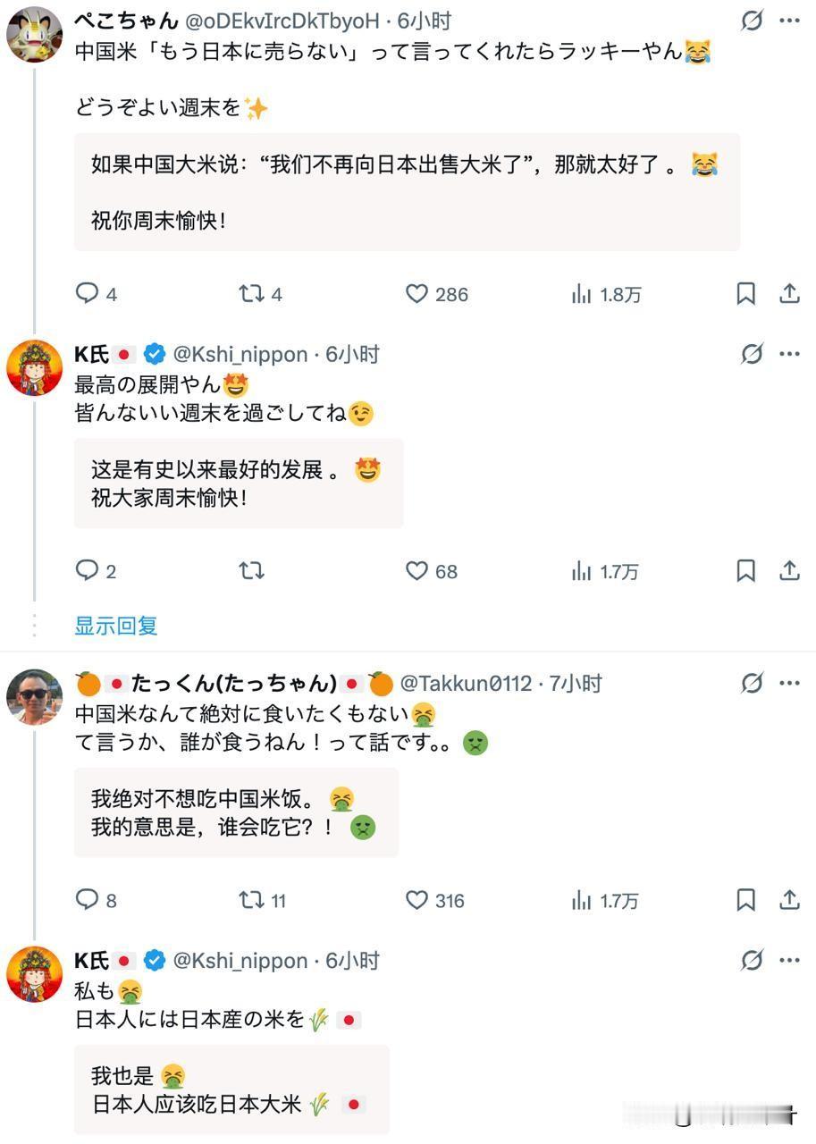 日本人开始抵制中国大米,并说日本人应该吃日本大米,那就吃高价大米吧! 上半年小泉进次郎放出古古米储备米表面拉了一波好感,实际效果甚微。这不,根据农林水产省11月14日数据,日本全国超市大米均价已达每5公斤4316日元,刷新半年前纪录并创历史新高。与常年同期形成鲜明对比的是,本该热销的新米价格普遍高出千余日元,品牌新米每5公斤突破6000日元已不罕见。日本米价格暴涨 日本天价大米 日本米价风波 高市早苗涉台言论将反噬日本