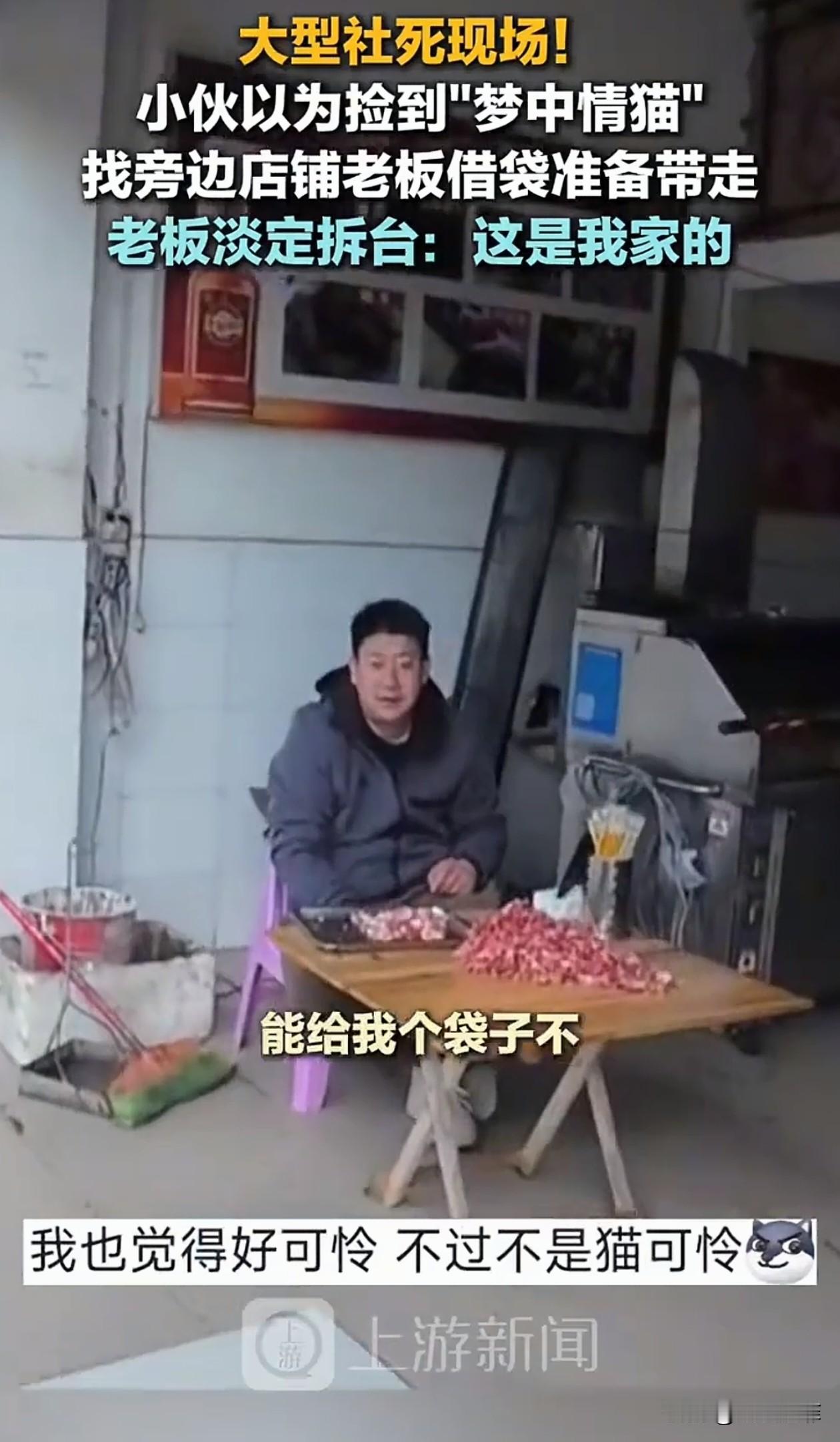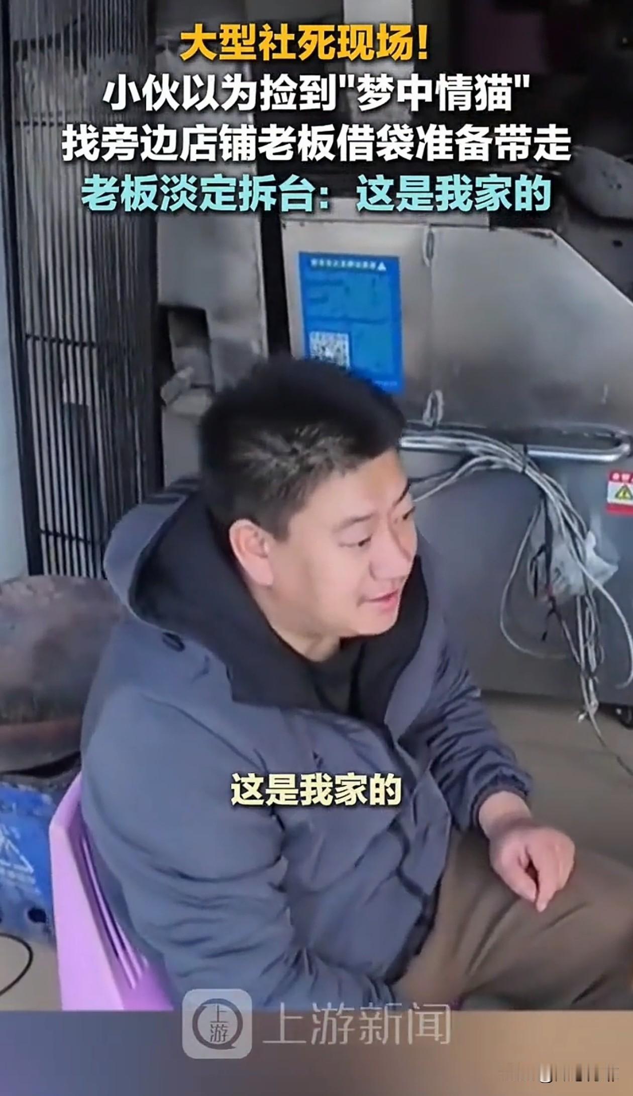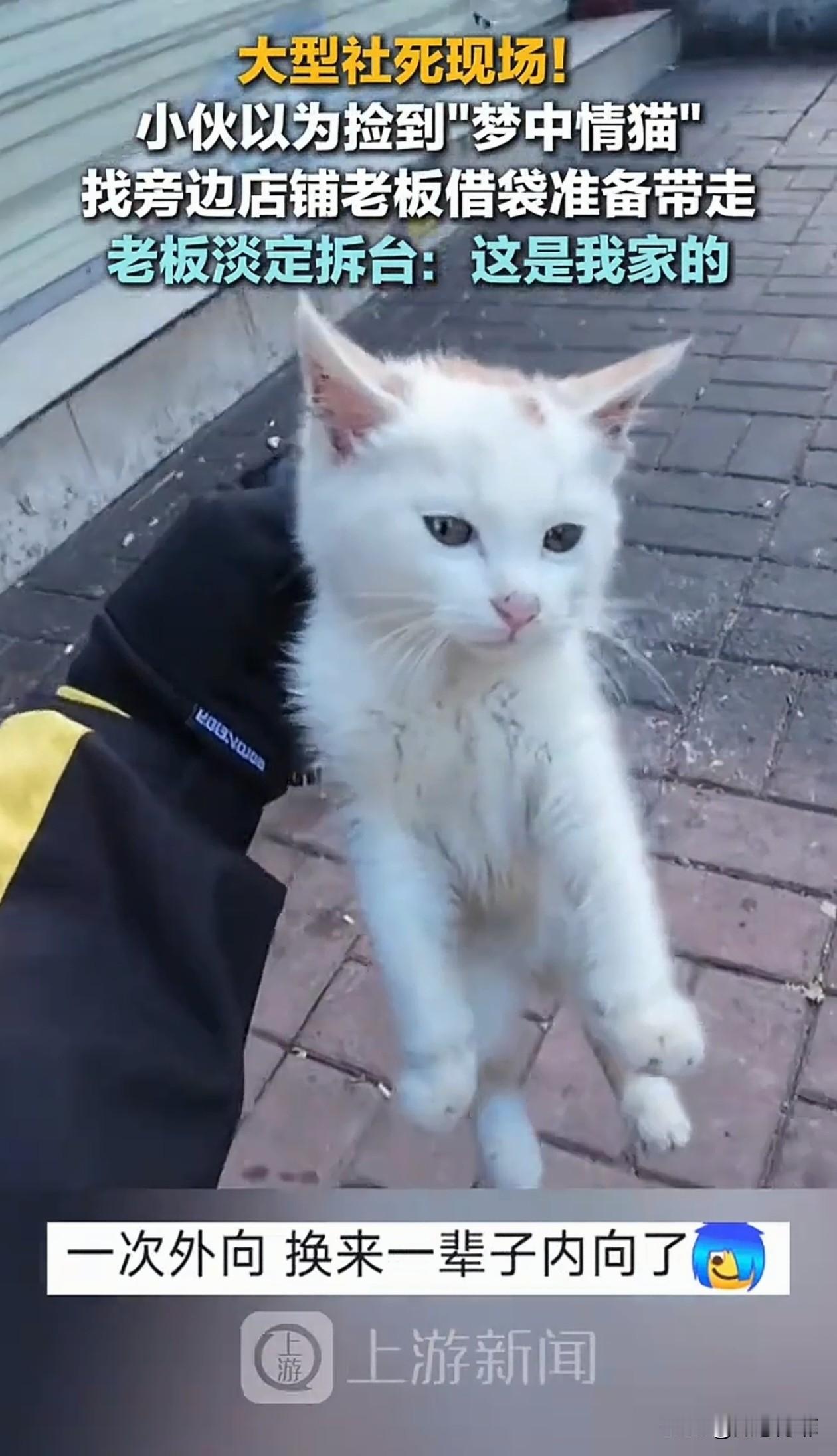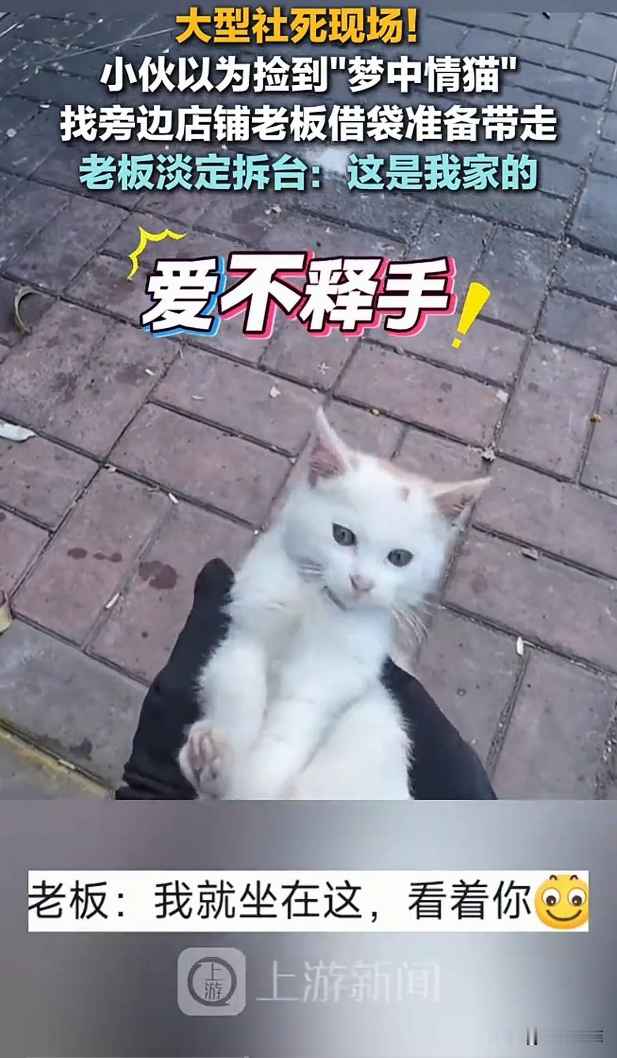 笑不活了!昆明,一外卖小哥看见一只小猫蹲在路边,以为是流浪猫,就准备捡回家养,他找到旁边店铺的老板借袋子,结果老板淡定拆台:这是我家的猫。 小哥一看见这只小猫就喜欢得不行,对它又摸又抱,爱不释手,还夸它是绝世好猫。他觉得小猫孤零零的,以为是流浪猫,就想把它带回家。 因为骑车不方便,他找到旁边一家店铺的老板说:老板可不可以借我个袋子,我捡了一只猫,怪可怜的。 结果老板抬头看了一眼他指的猫,特别淡定地说了句:那是我家的猫,刚跑出去溜达的。 小哥听完瞬间愣住,然后又忍不住笑了,原来是一个误会。 网友们也笑翻了,调侃小哥,简直是社死现场,空欢喜一场,还差点把别人家的猫“偷”走。 还有网友表示,猫咪内心肯定觉得,我就出门透透气,怎么还险些被拐走当宠物呢。 老板心想,见过偷猫的,没见过这么光明正大还来借袋子的,主打一个看你表演。 小哥遇见梦中情猫一时冲动,闹了乌龙,好在老板情绪稳定,最后和谐收场,又可爱又有趣。