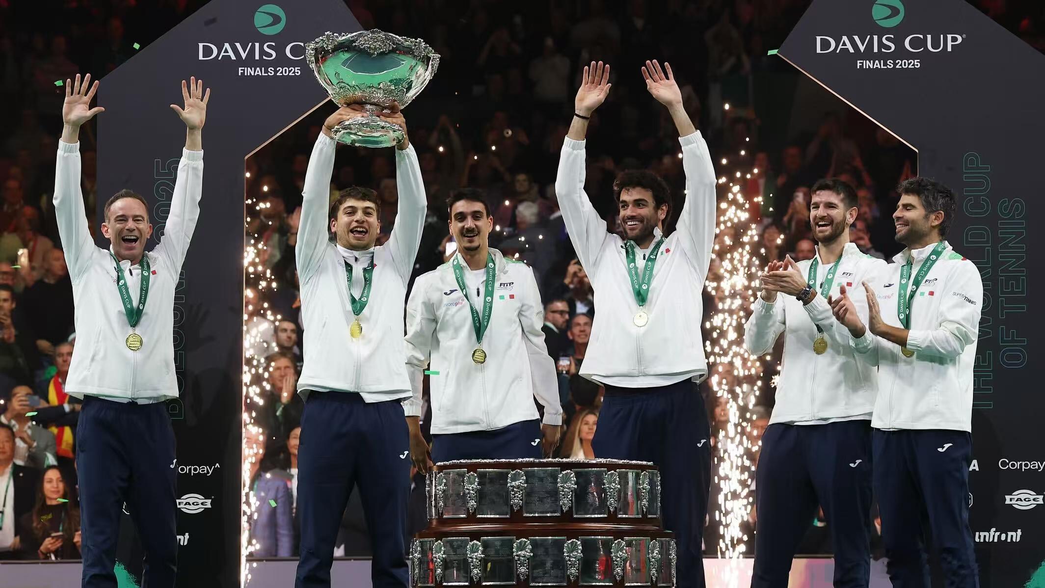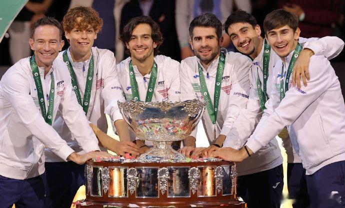 图1是明年戴维斯杯世界组预选赛的抽签情况,西班牙队作为今年亚军享受首轮轮空的待遇,意大利队作为东道主直接进入最后八强的决赛圈。我有个合理化建议,意大利队可以派两个队参赛,看图2和图3的冠军合影基本就是两套不同的阵容。一个是东道主意大利队,享受跟西班牙队一样的待遇——只是首轮轮空进入第二轮;一个是卫冕冠军意大利队,直接进入决赛圈八强。如果球员分配得当,再加上签运帮忙,这两支意大利队可以会师决赛。沃兰德里肯定忙不过来,可以让弗格尼尼在跳舞之余当另一个队的队长。