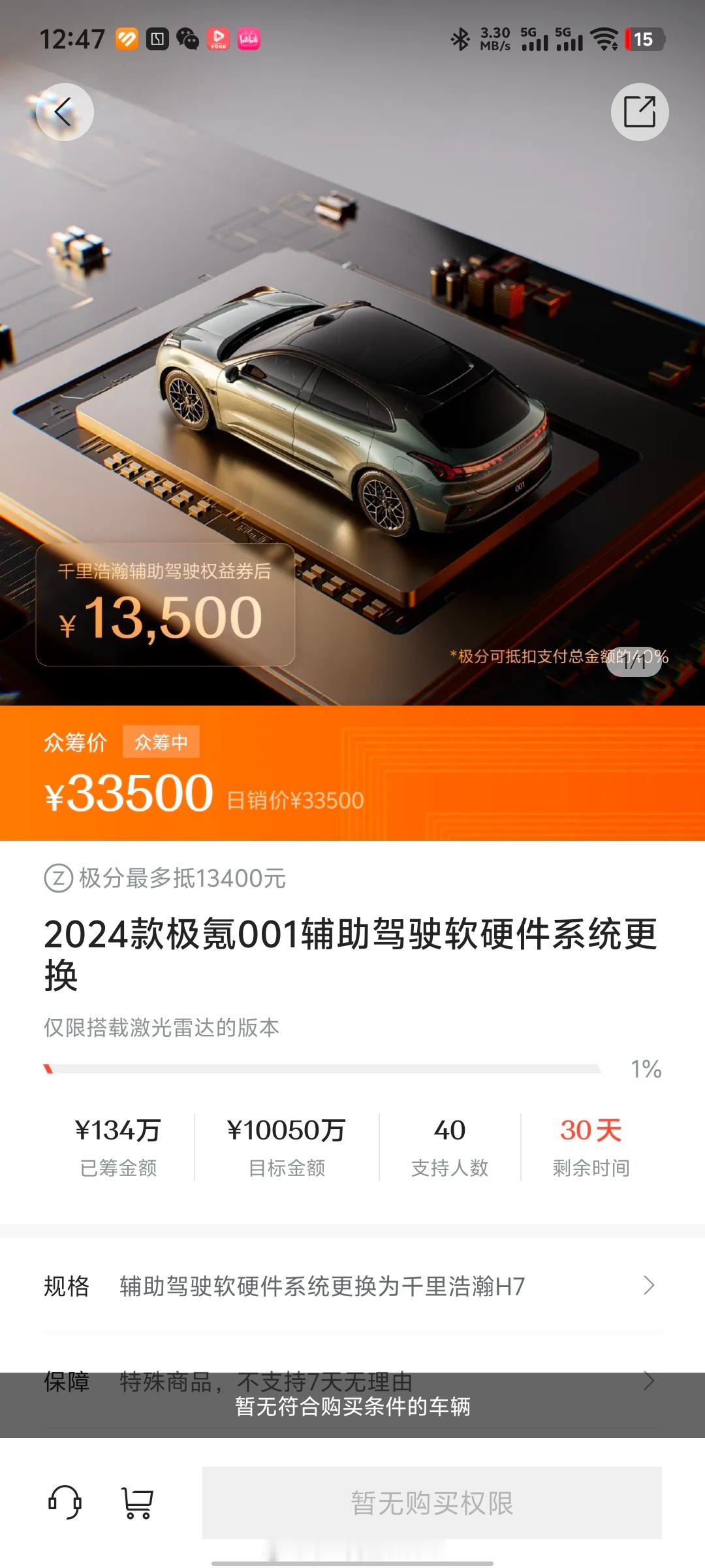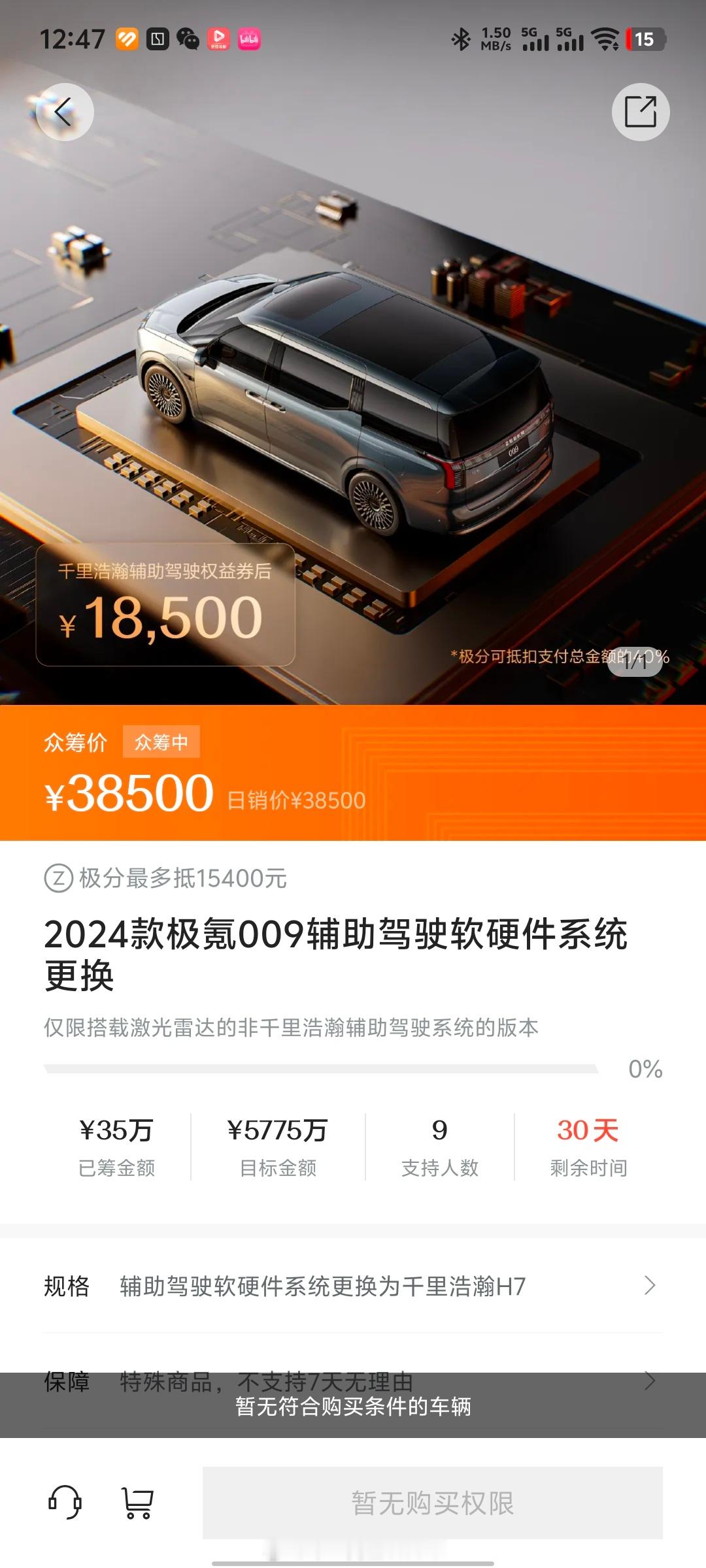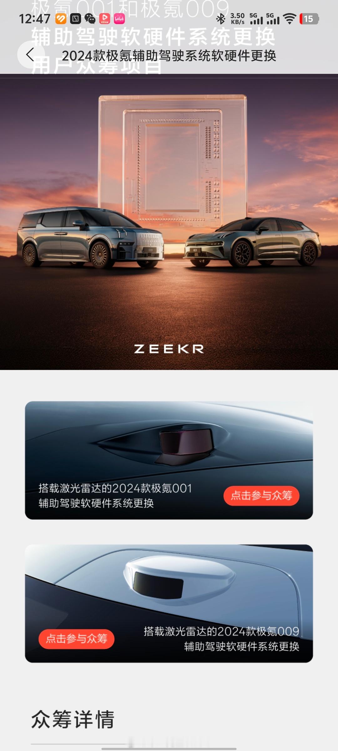 极氪之前发布会上说的给老款激光雷达车型换Thor-U 千里浩瀚智驾的众筹活动正式开启了这是一个大工程,前无古人,也不确定后面会不会有来者 不赚钱,交个朋友!价格:24款001 1.35万 24款009 1.85万极氪app的极物板块 已经上线可以参与了。这个价格不贵,但是需要众筹达到目标数量之后开启,因为这个成本真的很高,极氪也基本是赔钱在做。如果你是老款001和009车主,你会花这笔钱来更新吗?