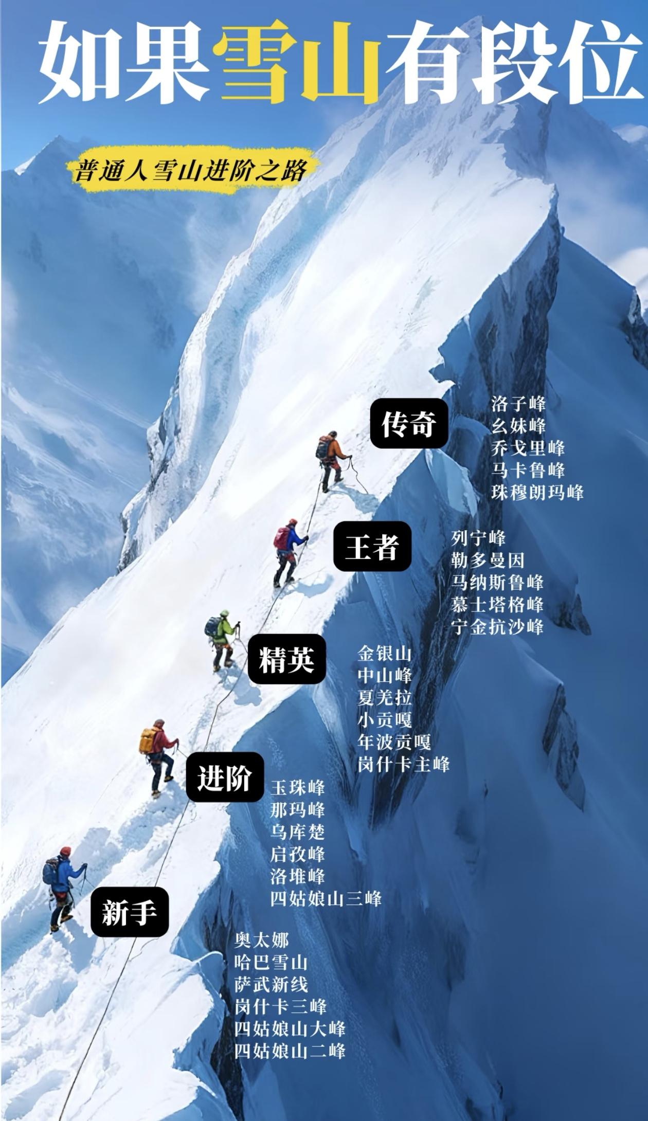 全国雪山段位排行榜出炉,从新手到传奇的进阶之路,爬过3座以上的请举手!