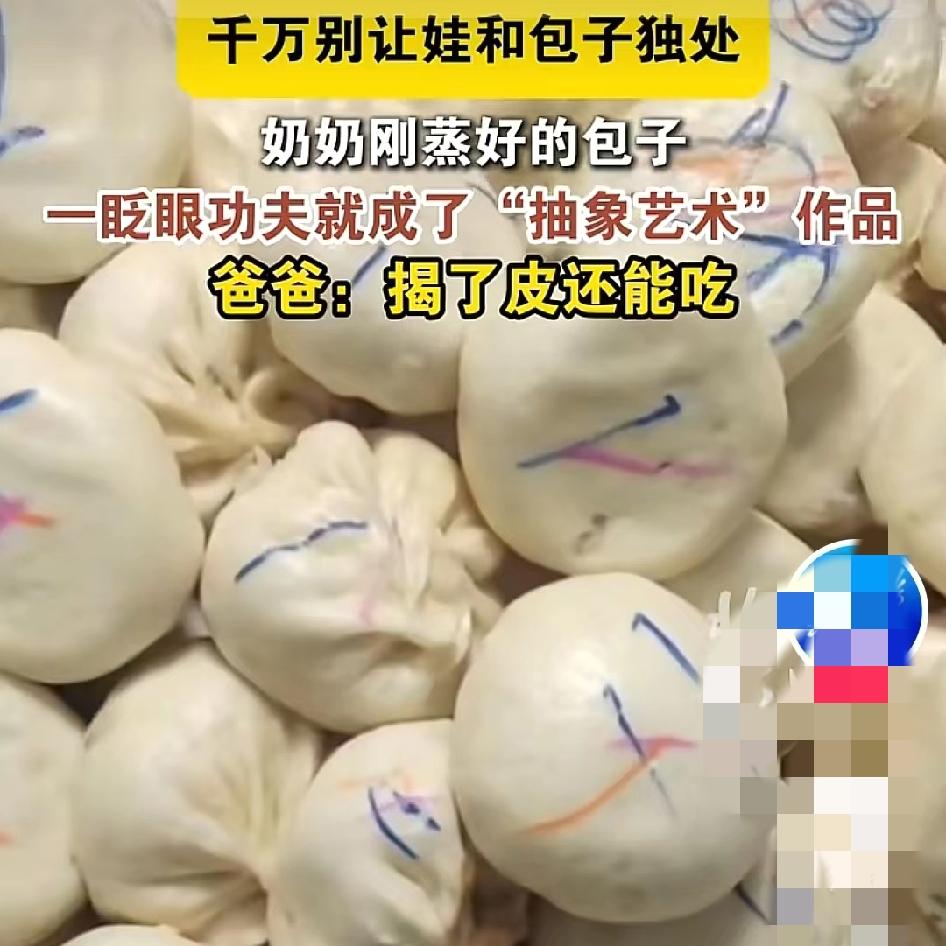 遇到这种情况 你说打还是不打 河南奶奶蒸的一锅热包子,晾凉的功夫就被娃用水彩笔全画了记号,又气又好笑! 还好外皮能撕掉不耽误吃,没造成浪费也算万幸,但这事儿可不能光当玩笑过。 娃调皮是天性没错,可乱涂食物本质是没意识到粮食珍贵,也不懂尊重长辈劳动。 网友说该暴打确实极端,我倒觉得让孩子跟着重新做一遍,体验一下揉面蒸包子多费劲儿,应该会让他长记性。 教育孩子从不是图一时痛快,而是帮他立规矩、明事理,小事不管教,长大容易没分寸。 家长多引导孩子爱惜物品、珍惜食物,比事后指责管用多了。你们家娃闯祸后,是靠讲道理还是实操教育让他认错的?孩子 珍贵 粮食