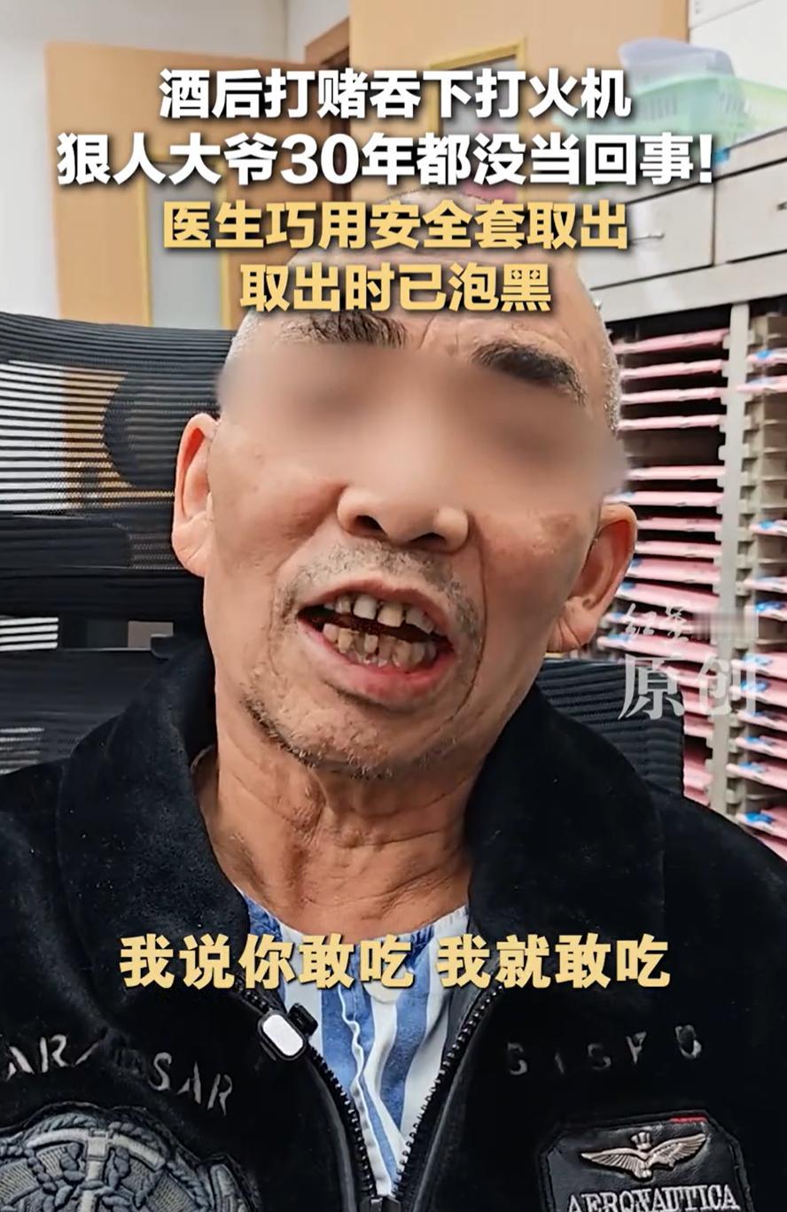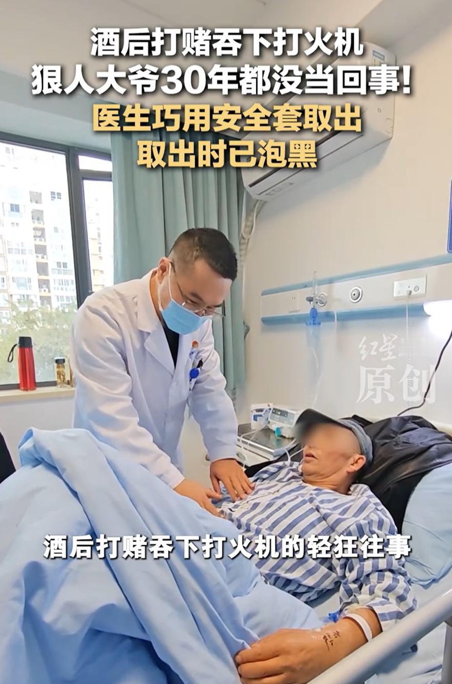没想到安全套还有这用处!四川成都,一位大爷腹部持续疼痛,开始还以为是消化不好,可后来去医院检查,胃镜一探,发现胃里躺着一个打火机,大爷这才想起来,是30年前他和人喝酒打赌时吞下去的,最终医生用安全套帮忙取出 不得不说,这个大爷也是个狠人,他年轻的时候跟朋友喝酒,气氛一上头,谁也不服谁,看到桌上摆着两个打火机,就来了劲儿。两个人互相较劲,觉得在酒桌上丢不了面子,谁也不服谁:“你敢吞,我就敢吞!”一咬牙一跺脚,真把打火机吞了进去。那一刻的冲动,把未来三十年的隐患埋下了 这么多年过去,大爷偶尔腹痛,吃点药就能缓解,他以为打火机早被身体“消化”掉了,直到最近持续胀痛,才决定认真做个检查 让人没想到的是,医生取东西的方法也挺巧,把一个安全套送到胃里,再把打火机整个包住,用异物钳慢慢拽出来,全程二十分钟。安全套在这事里充当了一个“保护层”,防止硬物直接刮伤胃壁和食道,也算是医疗里的一个小妙招 这事看着离谱,细想却挺耐琢磨。年轻时候的冲动往往不觉得有什么,觉得身体扛得住,也觉得事过去就翻篇。可身体是有记性的,那些当时觉得无所谓的决定,过了十年二十年,可能突然找你算账 这事也提醒很多人,身体不是保险箱,吞进去的东西不会凭空消失。年轻时候的任性,可能要中年甚至老年来承担后果,尤其那些带点硬核冲动的行为 其实说到底,不管多少岁,别跟身体赌气,也别跟冲动较劲,赌赢了是热闹,赌输了是麻烦,这次算好在遇到专业医生