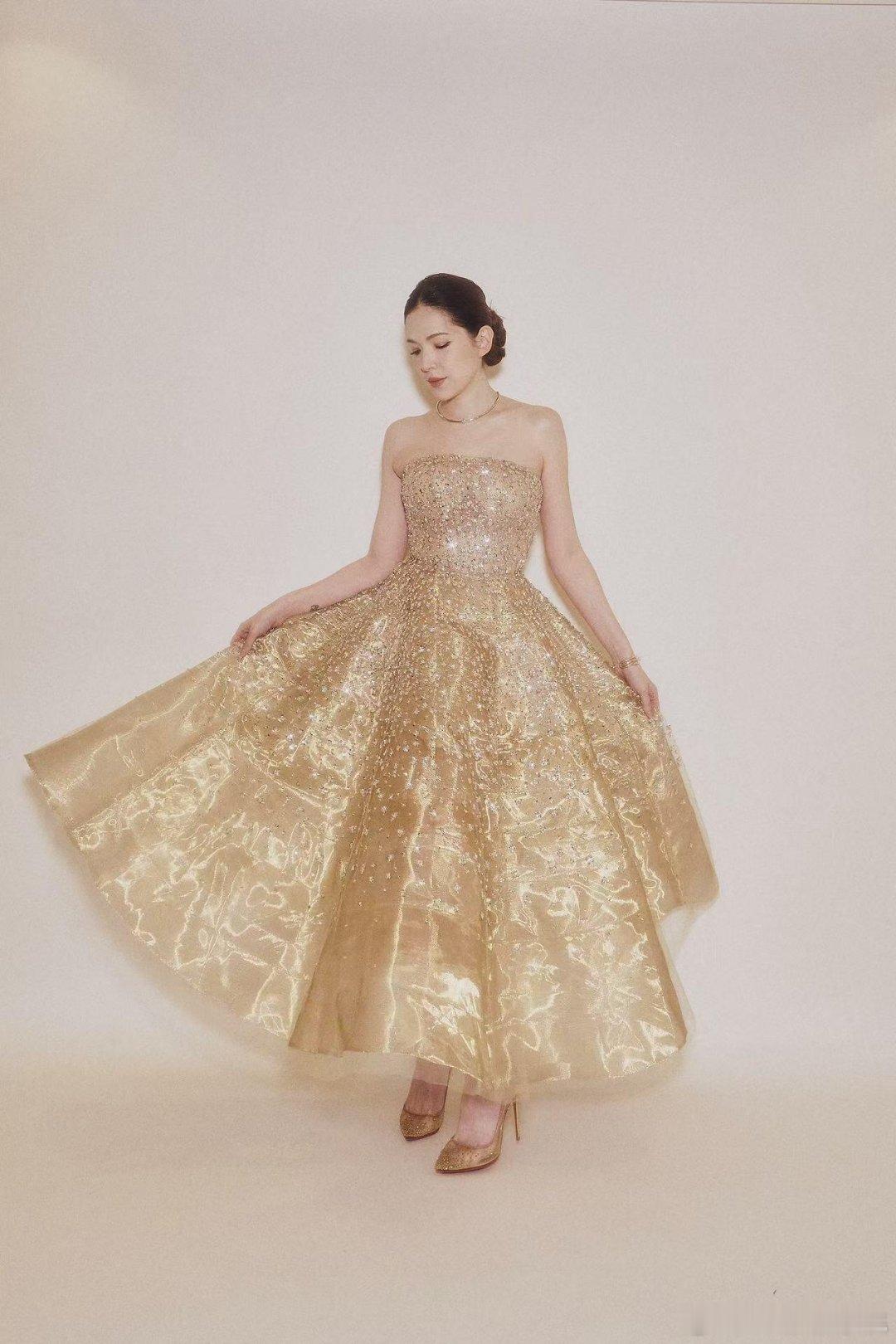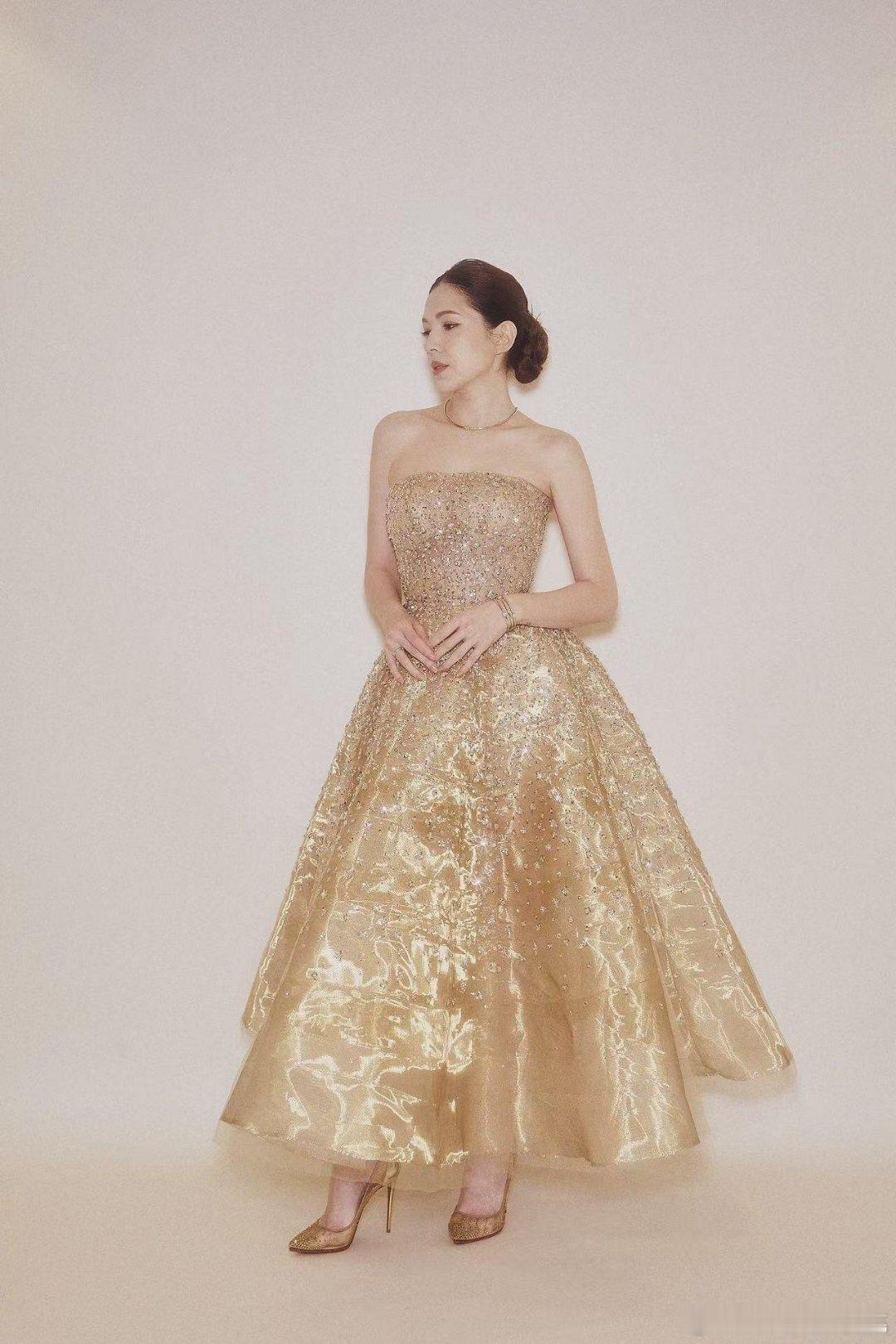 许玮宁近期红毯礼服选择了Nicole + Felicia 26春夏系列金色裙装,搭配她简约的发饰和珠宝,很优雅!