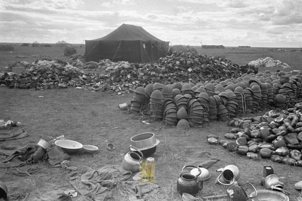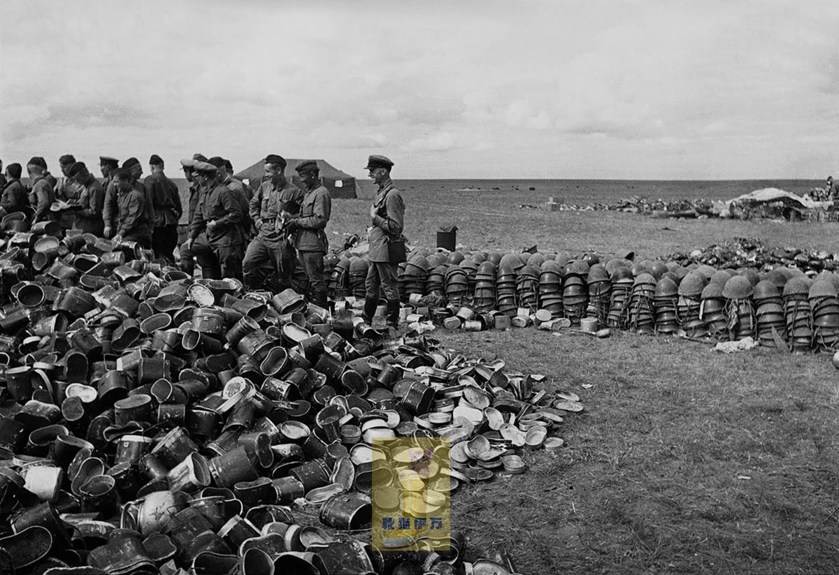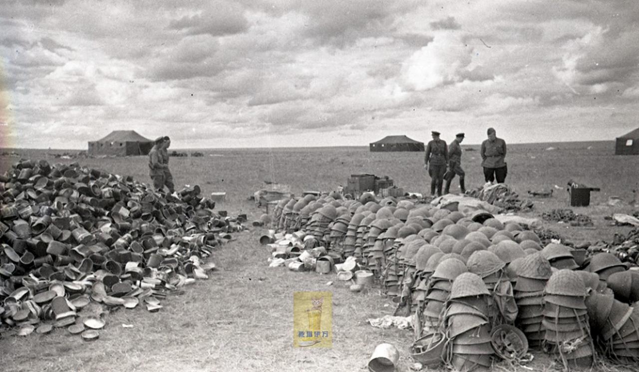 [呲牙] 半工业国对阵真正工业国,这次真的是露馅了,连锅碗瓢盆都丢光了——1939年,哈拉哈河战役后,苏军的战利品收缴队收集的日军钢盔、水壶、饭盒及其他物资(图1~4)。 “哈拉哈河战役”即1939年5月至9月在日本与苏联之间爆发的“诺门罕战役”,是二战初期一场重要的局部冲突。苏军在此役中由朱可夫指挥,首次实践了诸兵种协同作战理论。 照片中堆积如山的日军单兵装备,直观地反映了苏军在诺门罕战役中对日本关东军造成的沉重打击。 [呲牙] 半工业国对阵真正工业国,这次真的是露馅了,连锅碗瓢盆都丢光了。当然,在鬼子的宣传里,“皇军”还是大胜(参见图5)!