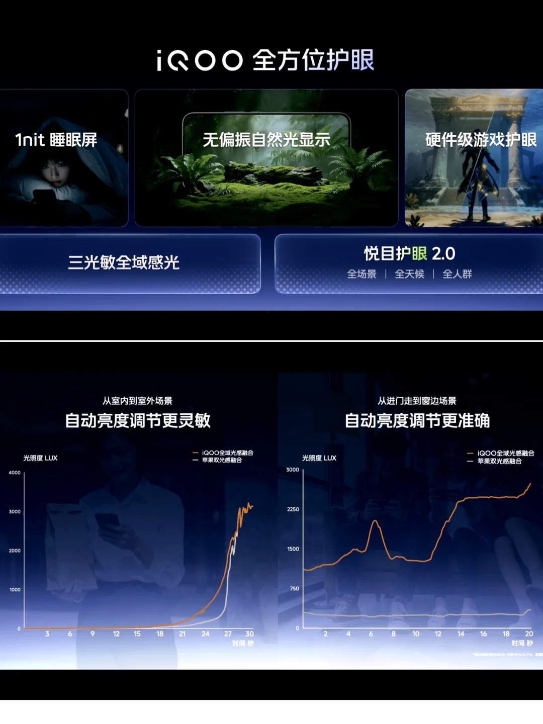 并且iQOO 15屏幕基材M14,色彩好、亮度高、功耗低,并且这次护眼也有全面提升,总的来说硬件素质跨代领先!